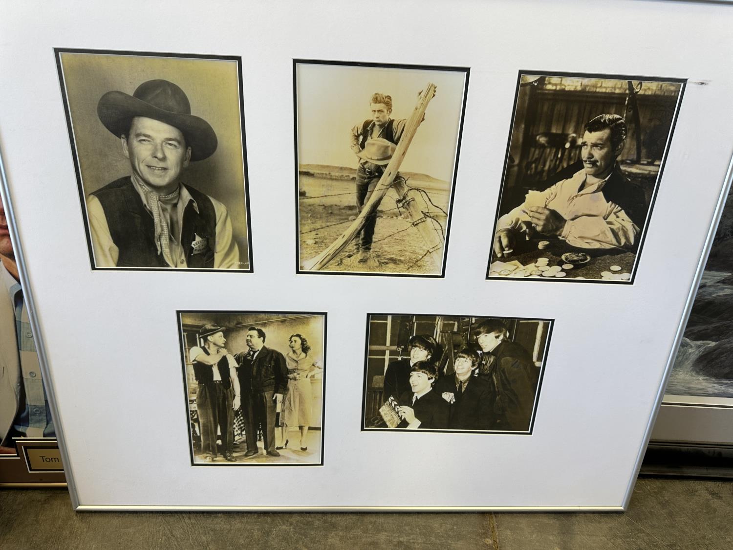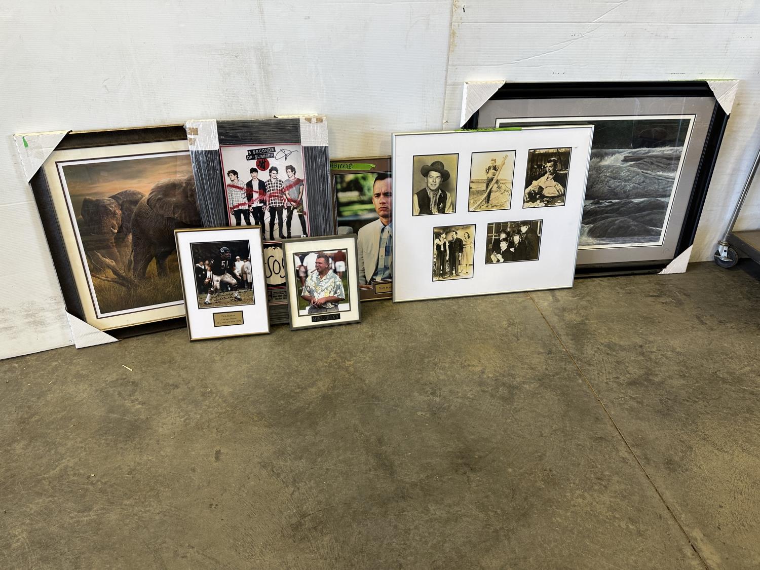 Collage frame - Beatles, Roy Rogers, Abbott & Costello, James Deen, (2) Ducks Unlimited prints, Tom Hanks, Mike Ditka, Dick Butkus, 5 Seconds of Summer