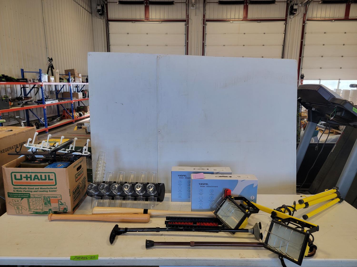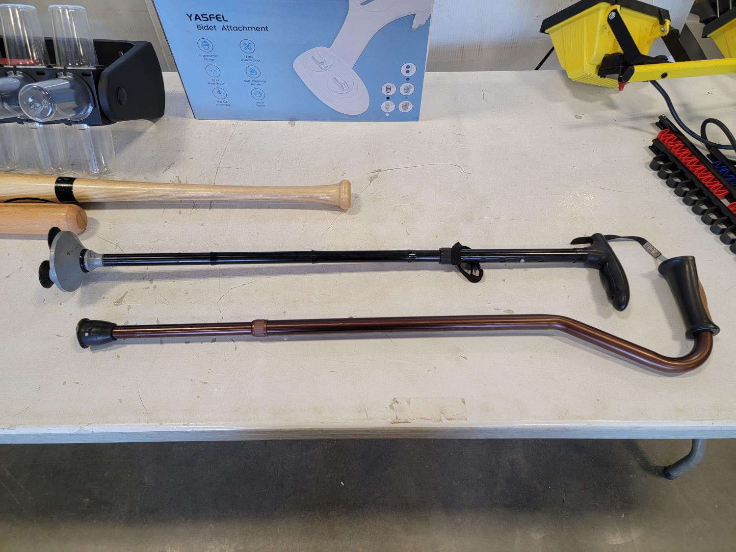 Work light, (2) bidet attachments, (2) canes, toy cars