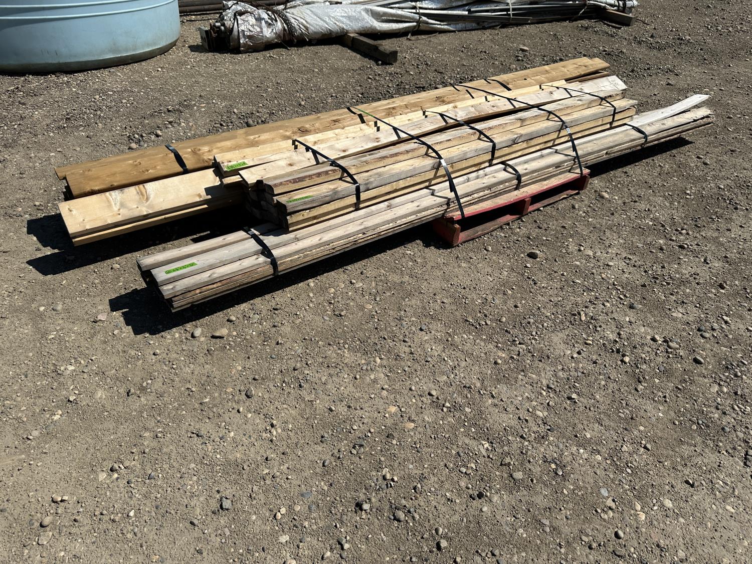 (12) 5/4 inch x 6 inch x 12 ft, (2) 2 inch x 6 inch x 12 ft spruce, (8) 1.5 inch x 1.5 inch x 8 ft spruce, (17) 3.5 inch x 1.5 inch x 8 ft spruce, (13) 3.5 inch x 0.5 inch x 12 ft