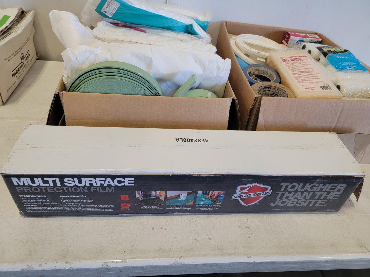 Multi surface protection film, hooded coveralls, roller refills, sanding sponges, painters tape