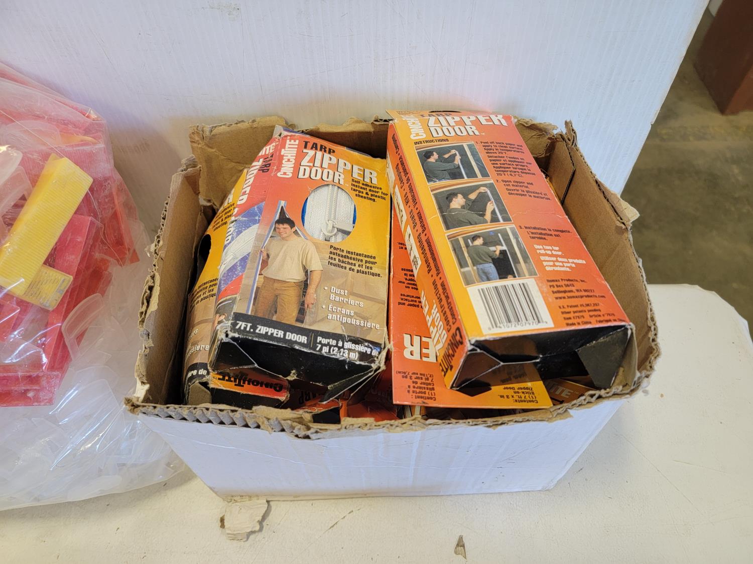 5446 Qty of Silicone/Caulking Guns, Tile Spacers and Tarp Zipper Doors