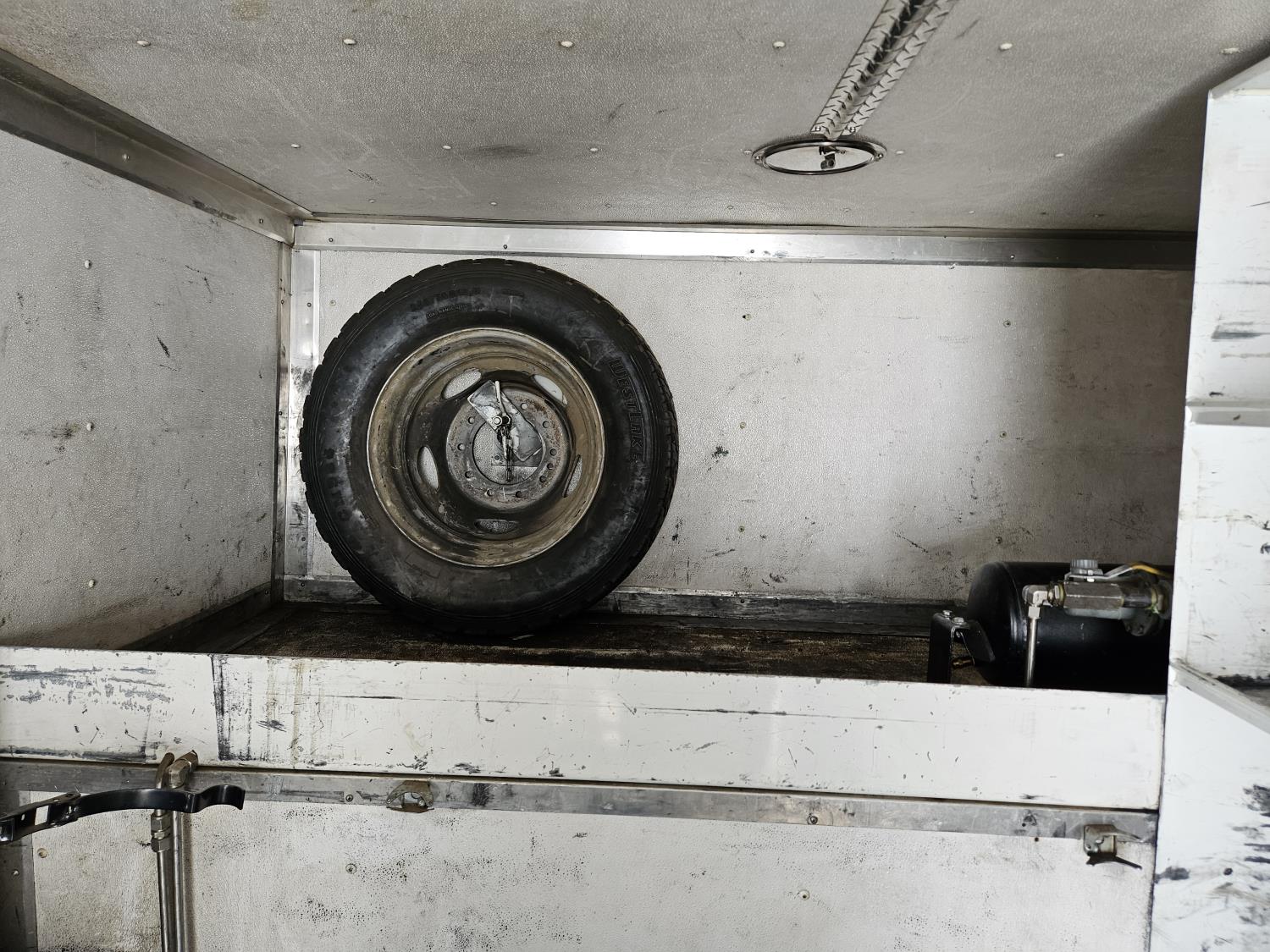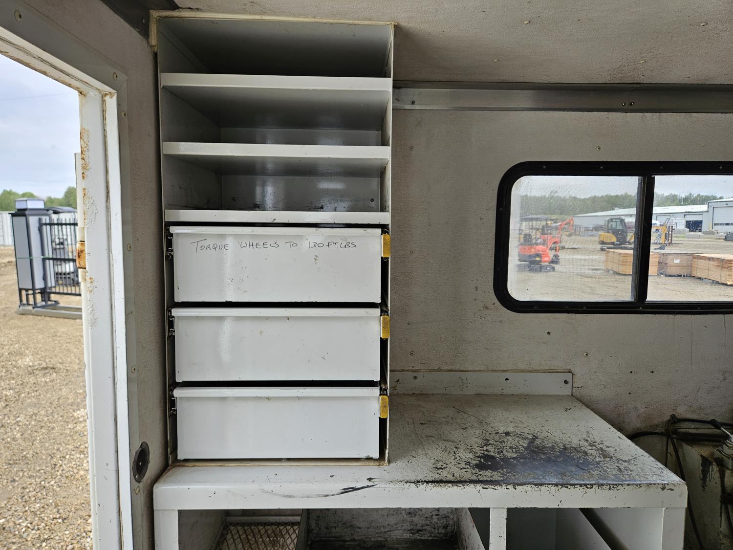 interior height 84 inch, 91 inch wide, rear man door, dual side doors, shelving, reels, window