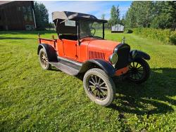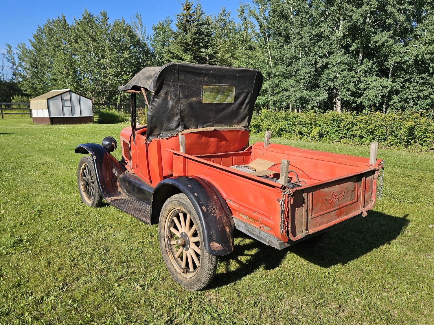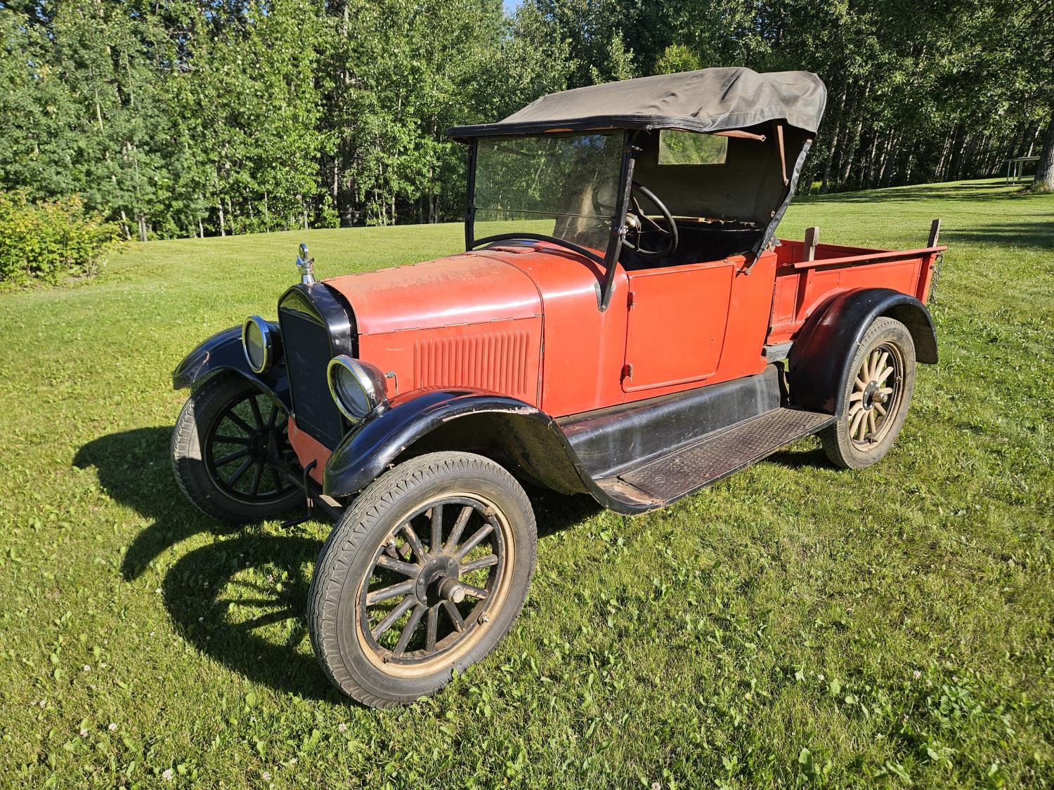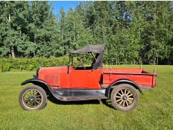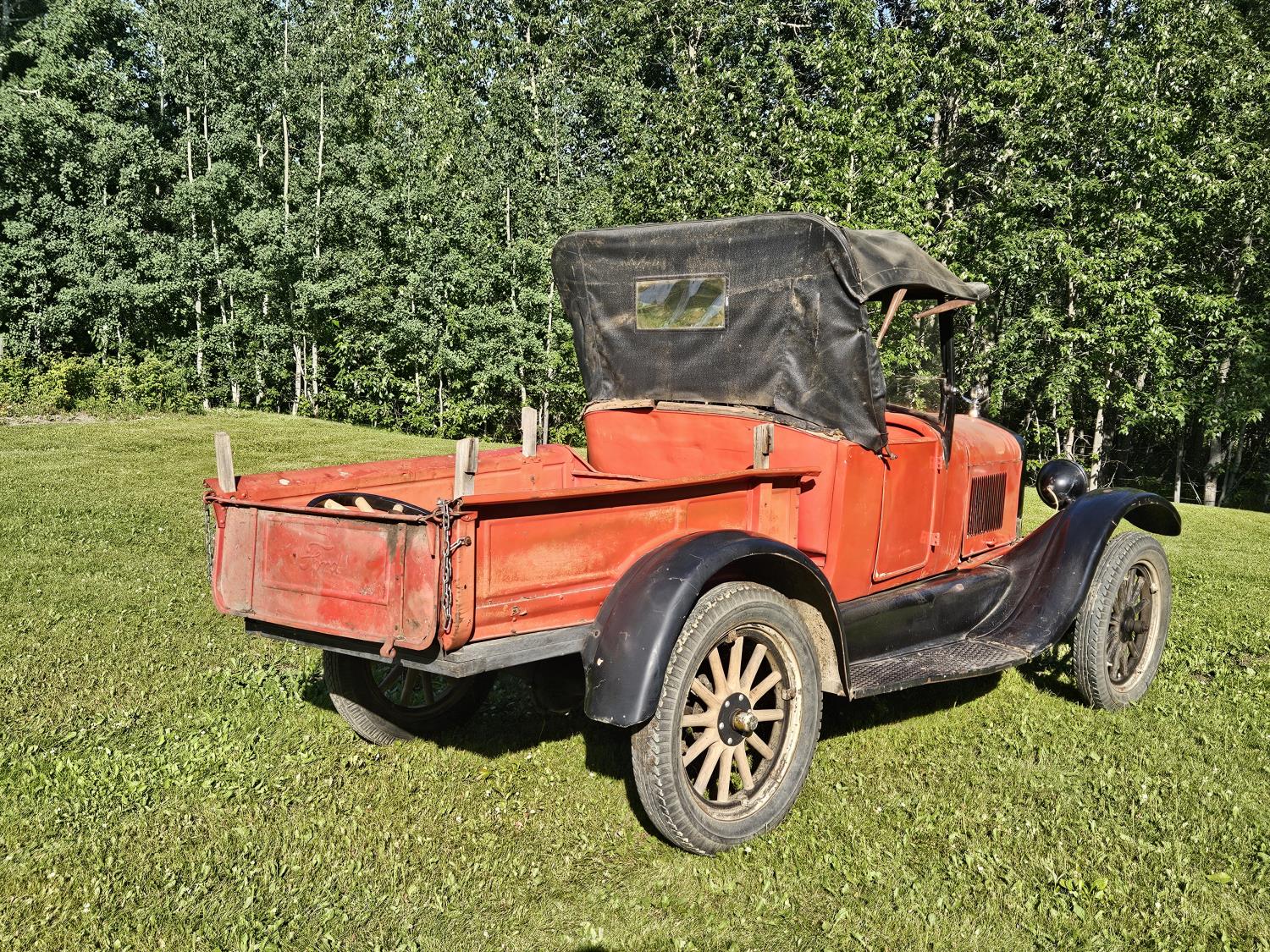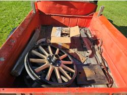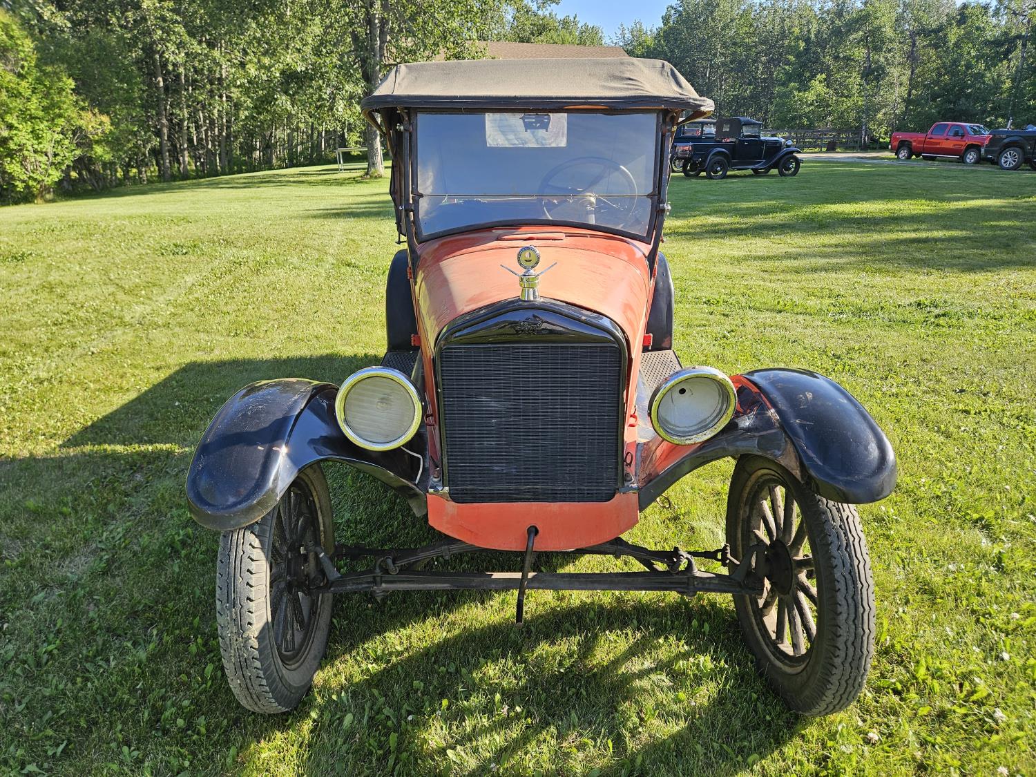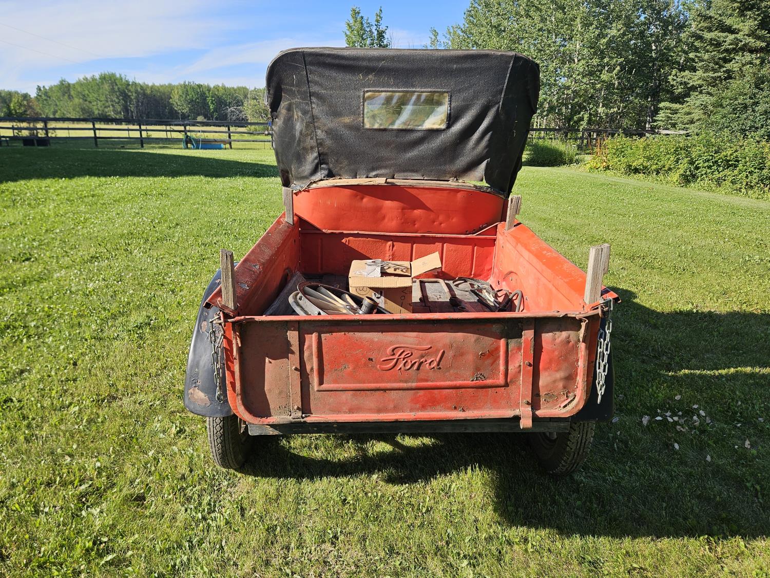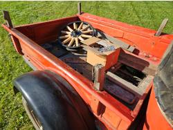 4 cylinder gas engine, 2 speed planetary transmission, 2 wd, 6 volt positive ground, spring suspension, 2 wheel brakes, wooden spoke wheels, extra parts, 4.40/4.50-21 tires, this unit runs but needs a tune up