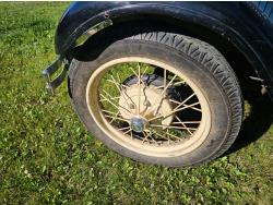 4 cylinder gas engine, 3 speed manual transmission, 2 wd, 6 volt positive ground, spring suspension, (4) roll down windows, 4.50/4.75-21 tires