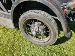 4 cylinder gas engine, 3 speed manual transmission, 2WD, 6 volt positive ground, spring suspension, 4.50/4.75-21 tires
