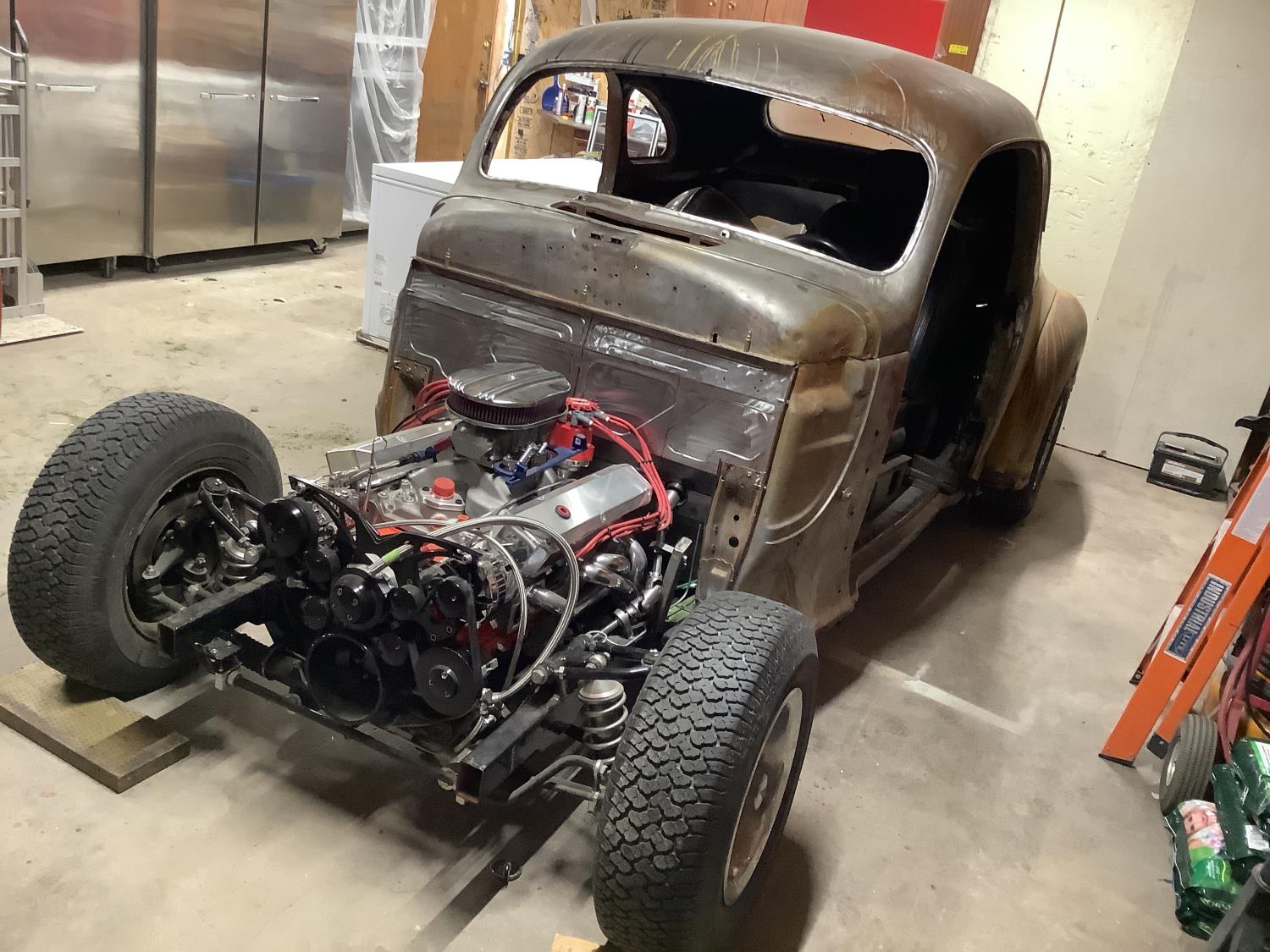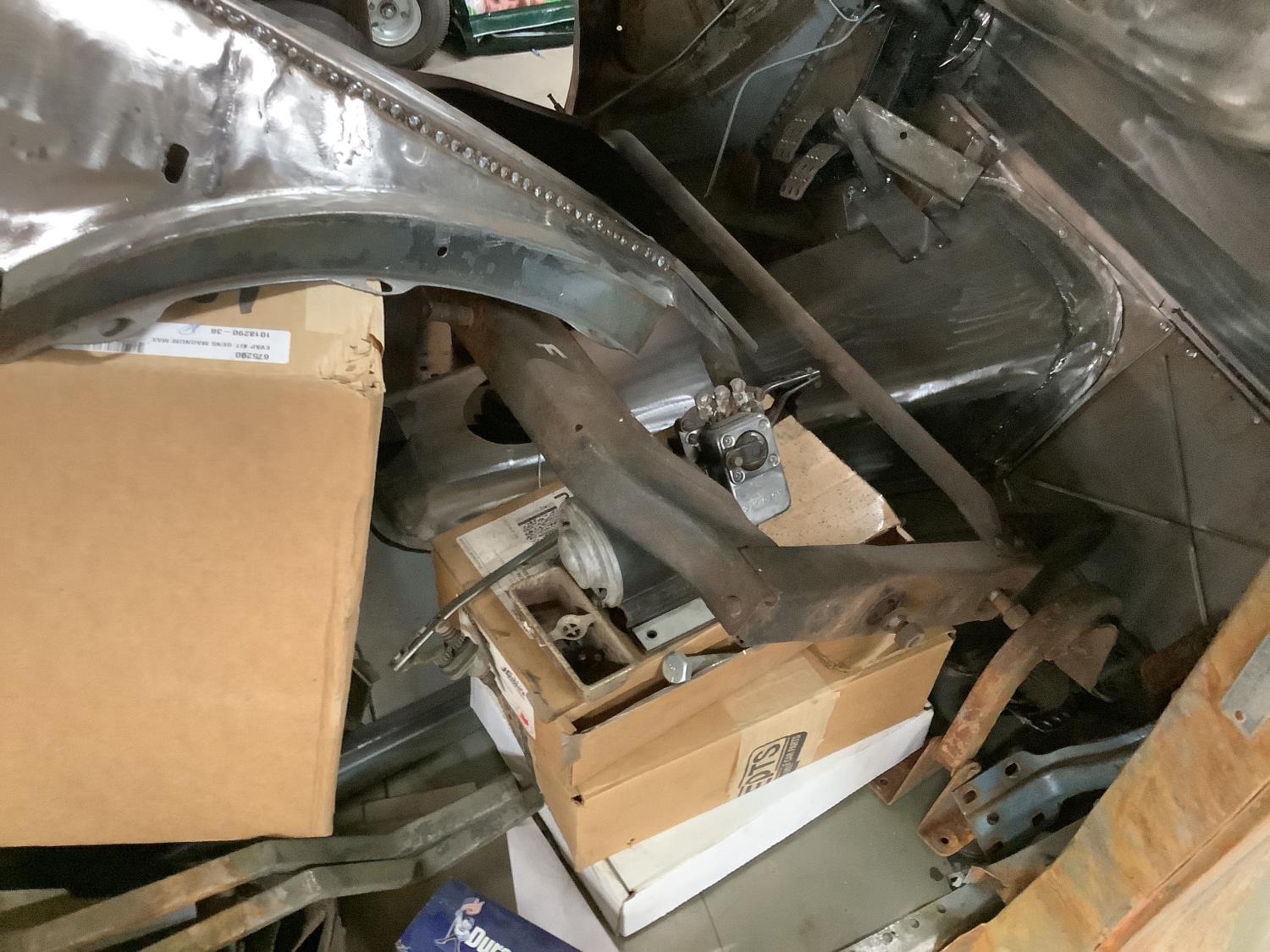 Total rebuilt Chrysler 340 Stocker Kit engine board out to 418 CI that has not been started yet. New TKO 5 speed manual transmission, new Clutch, rear end is a GM 12 Bolt posy rebuilt. Front end is a new Mustang 2 front suspension, power steering. As seen in the pictures there are body parts doors almost everything is there to finish up the restoration project