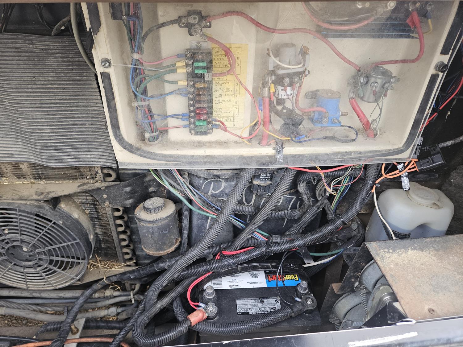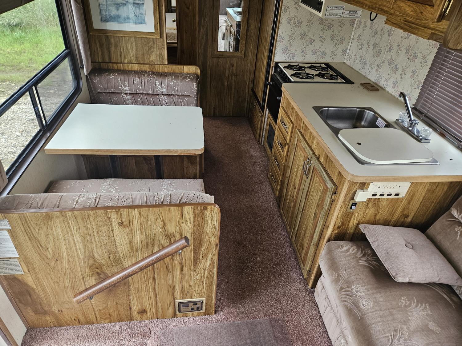 7.4L V8 gas engine, automatic transmission, rear bedroom, full bathroom, fridge, stove, microwave, A/C, Onan 4000 generator, 8R19.5 tires, needs to be boosted to run has electrical draw