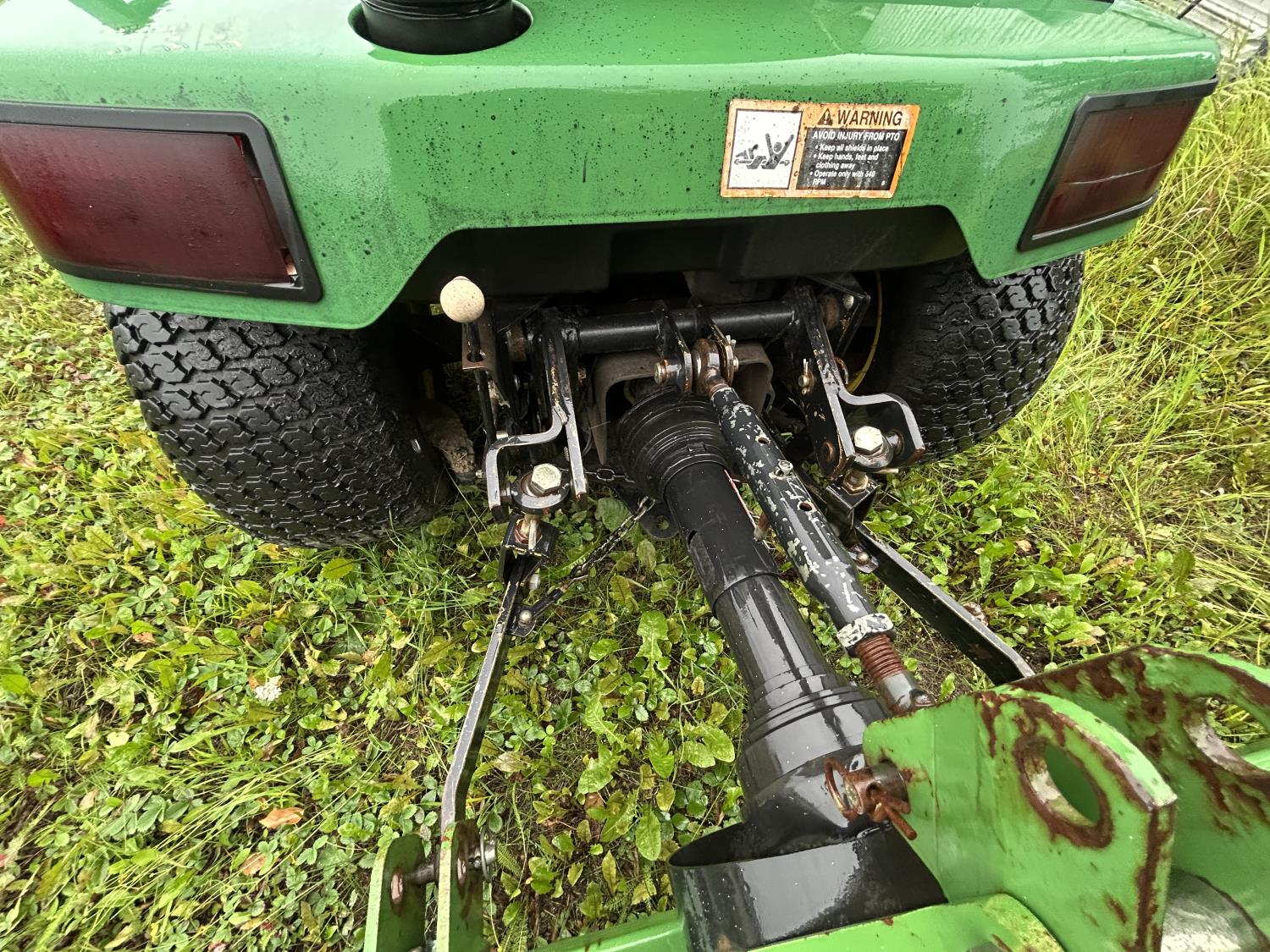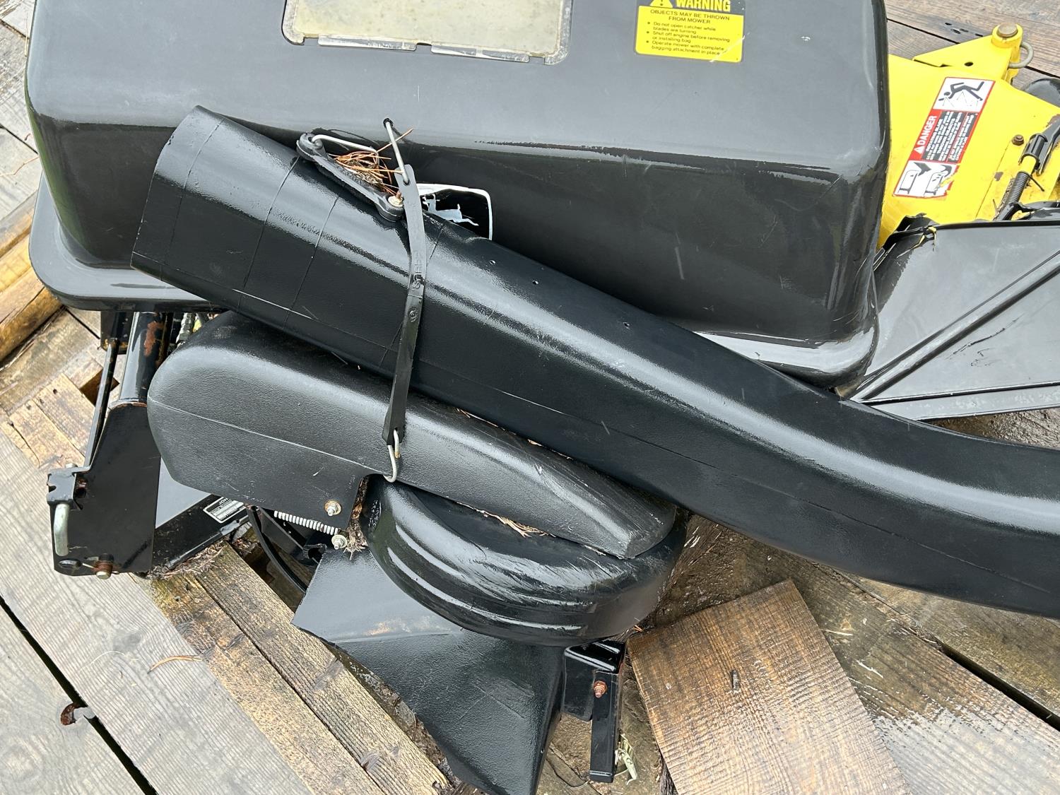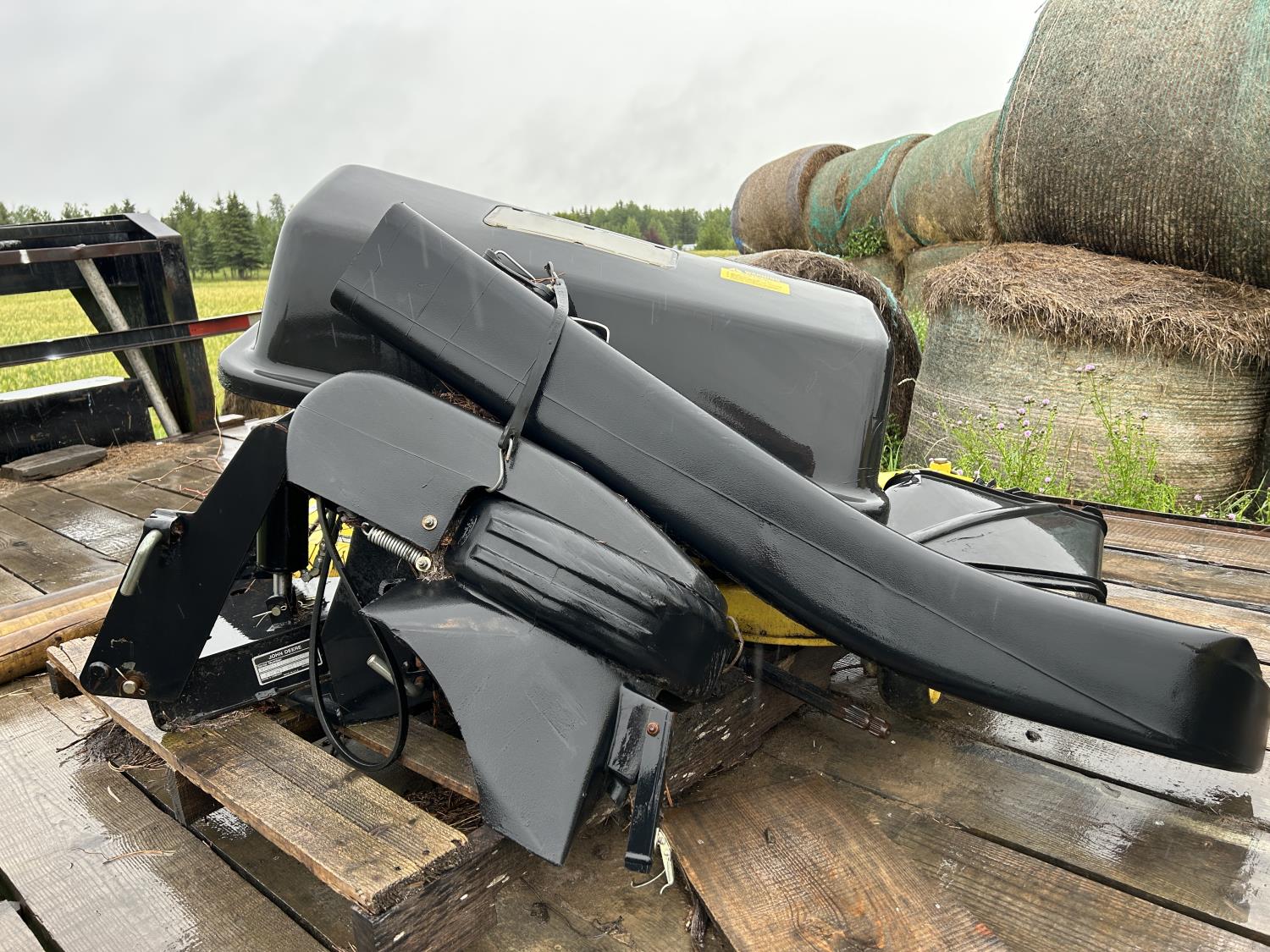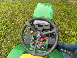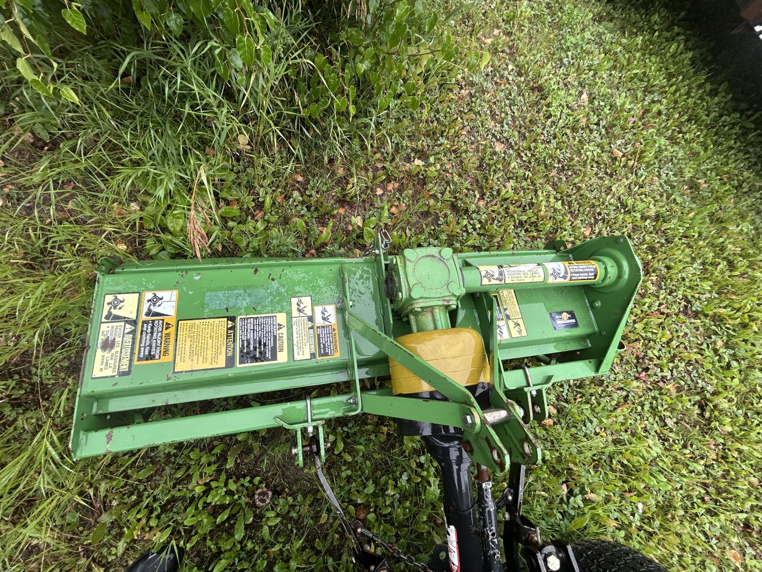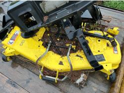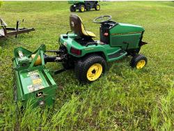 Selling as a package including 54 inch mid mount mower deck, power flow bagger (less bags), John Deere 47 inch front mount snow blower, John Deere PTO drive 450 Tiller