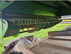John Deere 914 14 ft pick-up header, reverser, chaff spreader, chopper, big top hopper extension, A/C, radio, buddy seat, 30.5-32 front tires, 14.9-24 rear tires