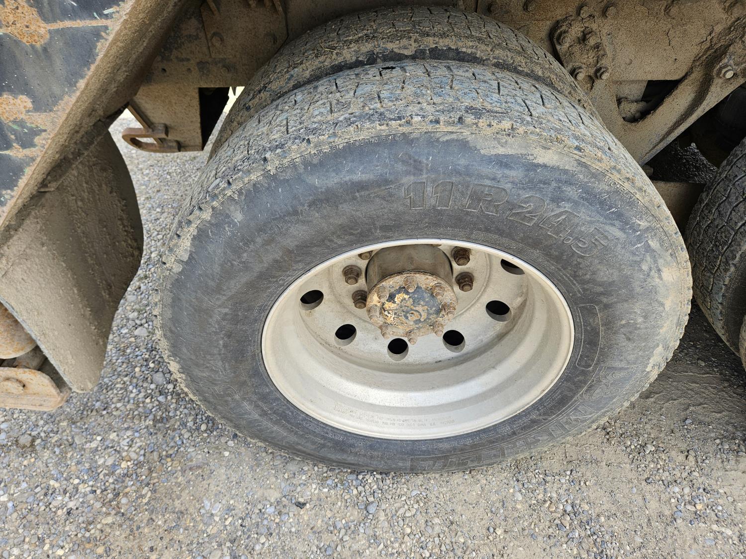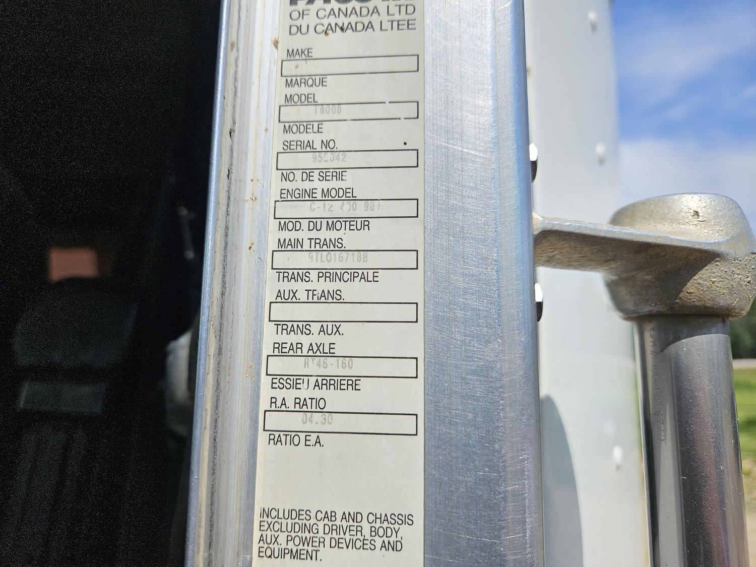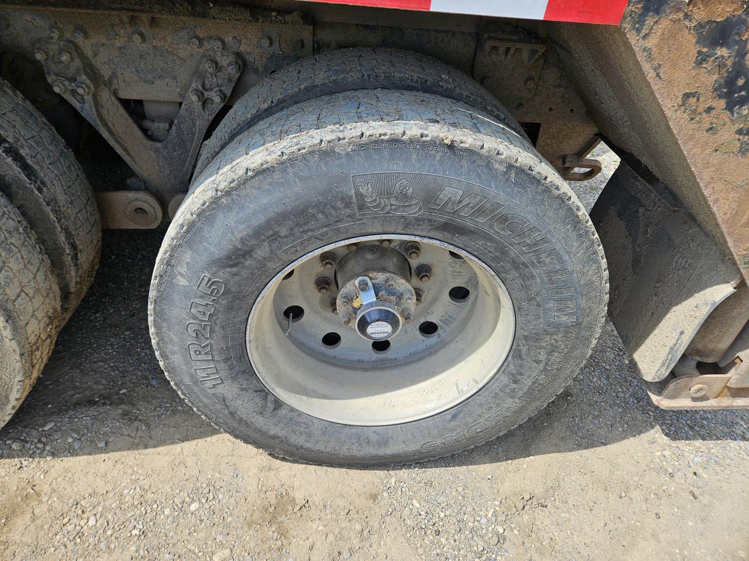 Caterpillar C12 12 L 425 HP engine, engine brake, positive air shutoff, Eaton Fuller 18 speed manual transmission, 38 inch sleeper, A/C, cruise control, leather interior, air ride driver seat, radio, CB radio, stereo, hydraulic wet kit, aluminum moose bumper, aluminum headache rack, tool boxes, chain holders, outriggers, 14,000 lb front axle, 46,000 lb rear axles, full lockers, 8 bag air ride, 8 ft lugger arms, all aluminum wheels, 385/65R22.5 front tires, 11R24.5 rear tires