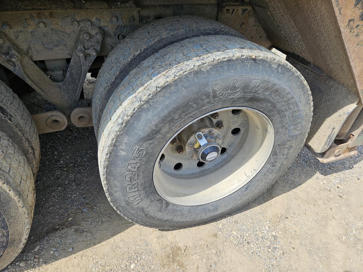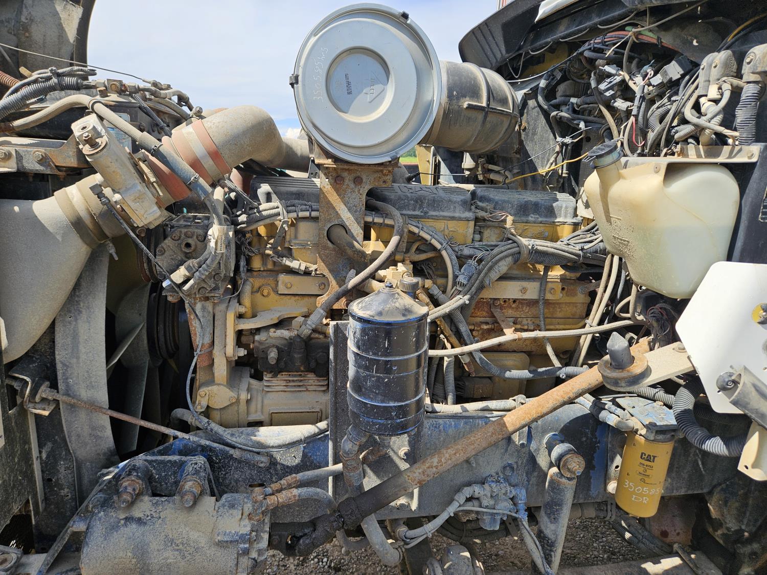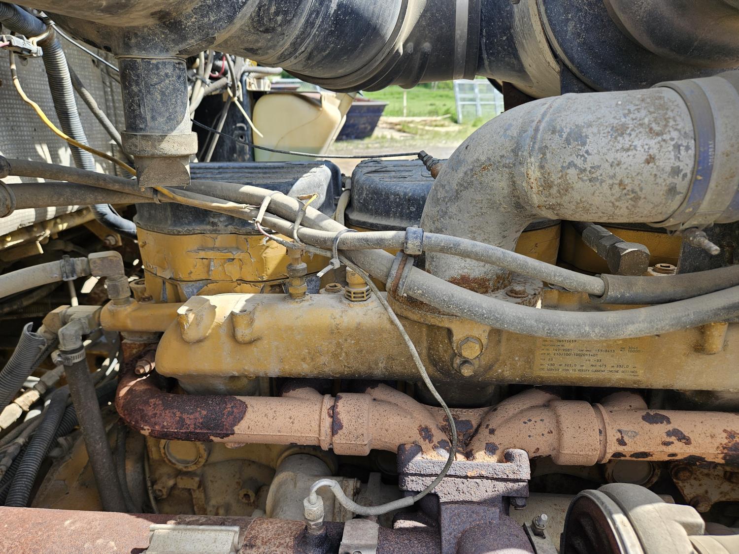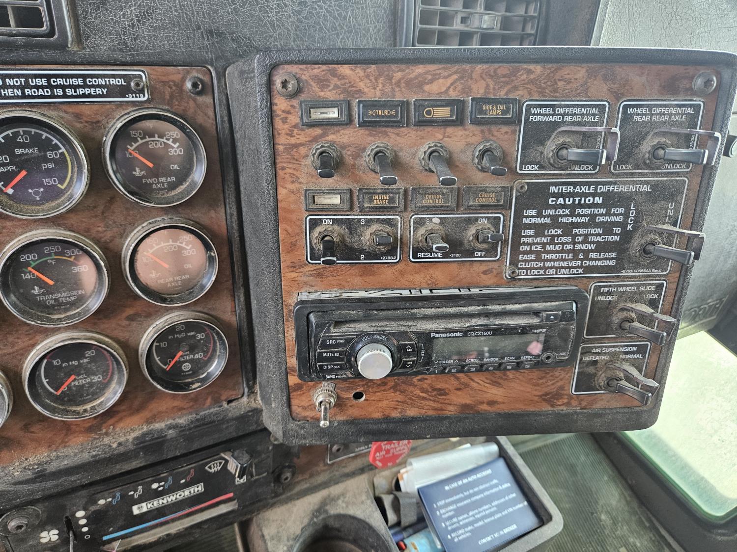 Caterpillar C12 12 L 425 HP engine, engine brake, positive air shutoff, Eaton Fuller 18 speed manual transmission, 38 inch sleeper, A/C, cruise control, leather interior, air ride driver seat, radio, CB radio, stereo, hydraulic wet kit, aluminum moose bumper, aluminum headache rack, tool boxes, chain holders, outriggers, 14,000 lb front axle, 46,000 lb rear axles, full lockers, 8 bag air ride, 8 ft lugger arms, all aluminum wheels, 385/65R22.5 front tires, 11R24.5 rear tires