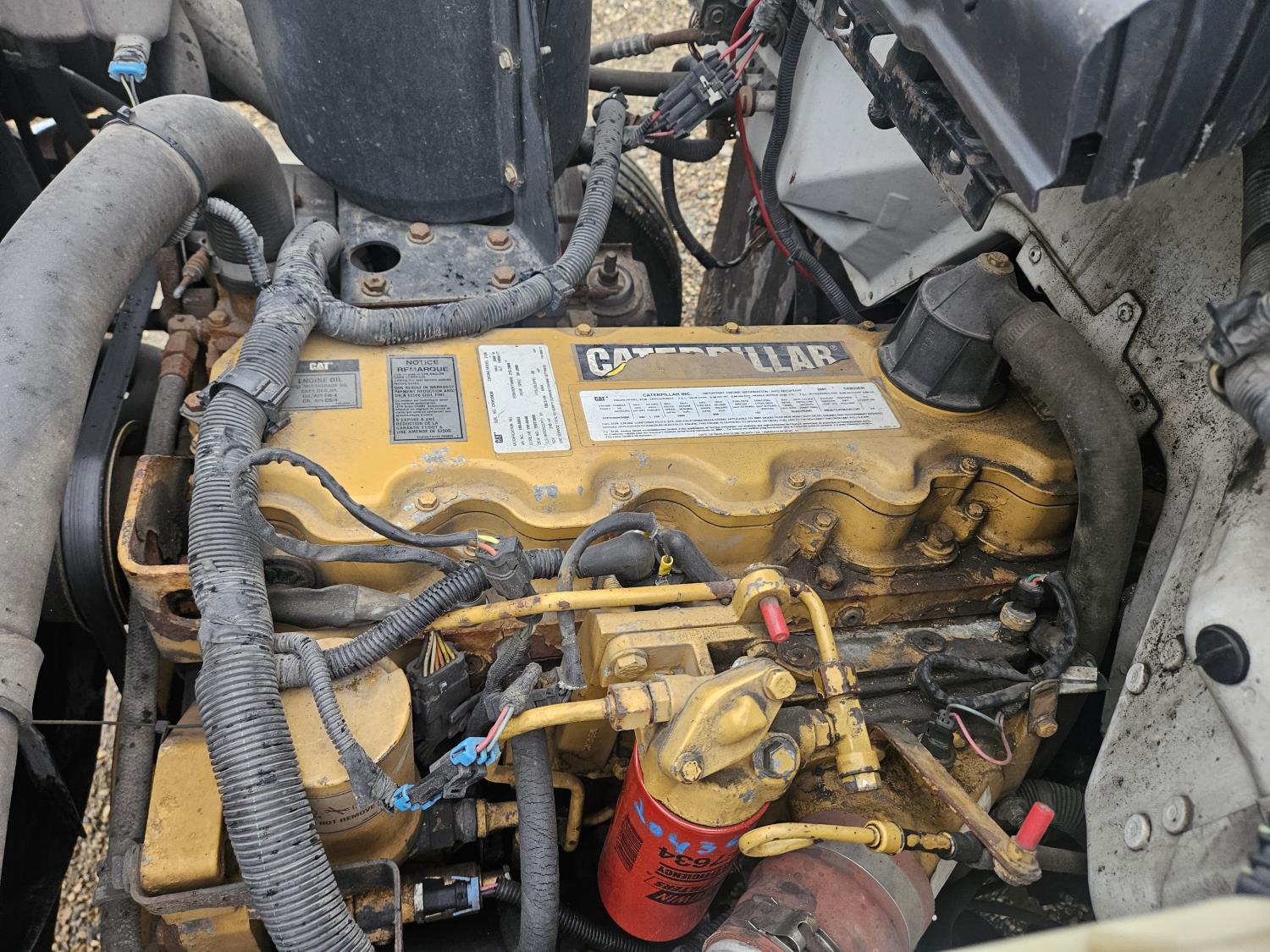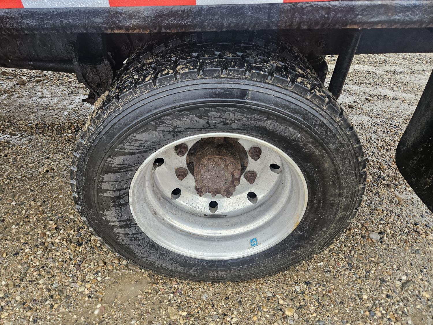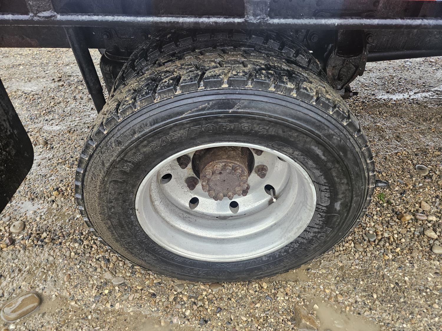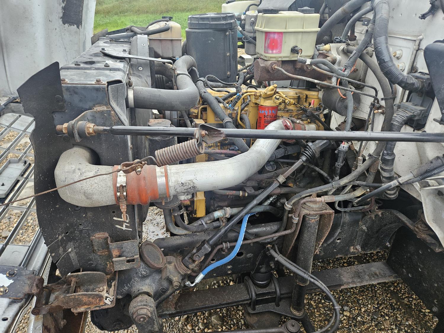 Cat 3126 7.2 L 6 cylinder 210 HP diesel engine, Allison automatic transmission, A/C, hydraulic wet kit, steel tool boxes, 8 ft x 13 ft deck, Fassi F65A.23 3 section 29 ft knuckle crane, outriggers, air ride suspension, hydraulic brakes, cruise control not working, all aluminum wheels, 245/70R19.5 tires