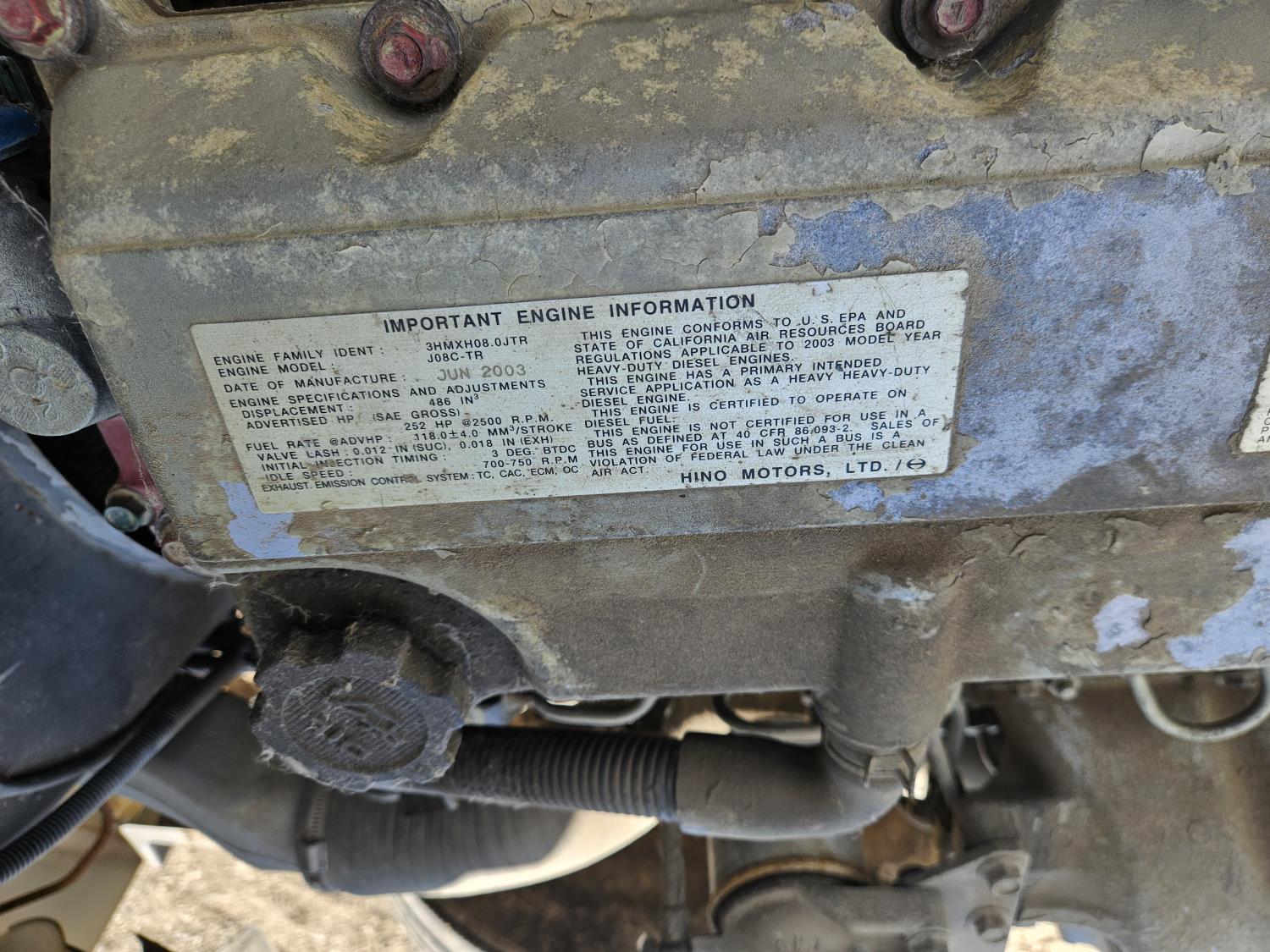 Hino 6 cylinder 252 HP diesel engine, positive air shutoff, Eaton Fuller 9 speed manual transmission, A/C, radio, 20 ft van, spring suspension, air brakes, 11R22.5 tires