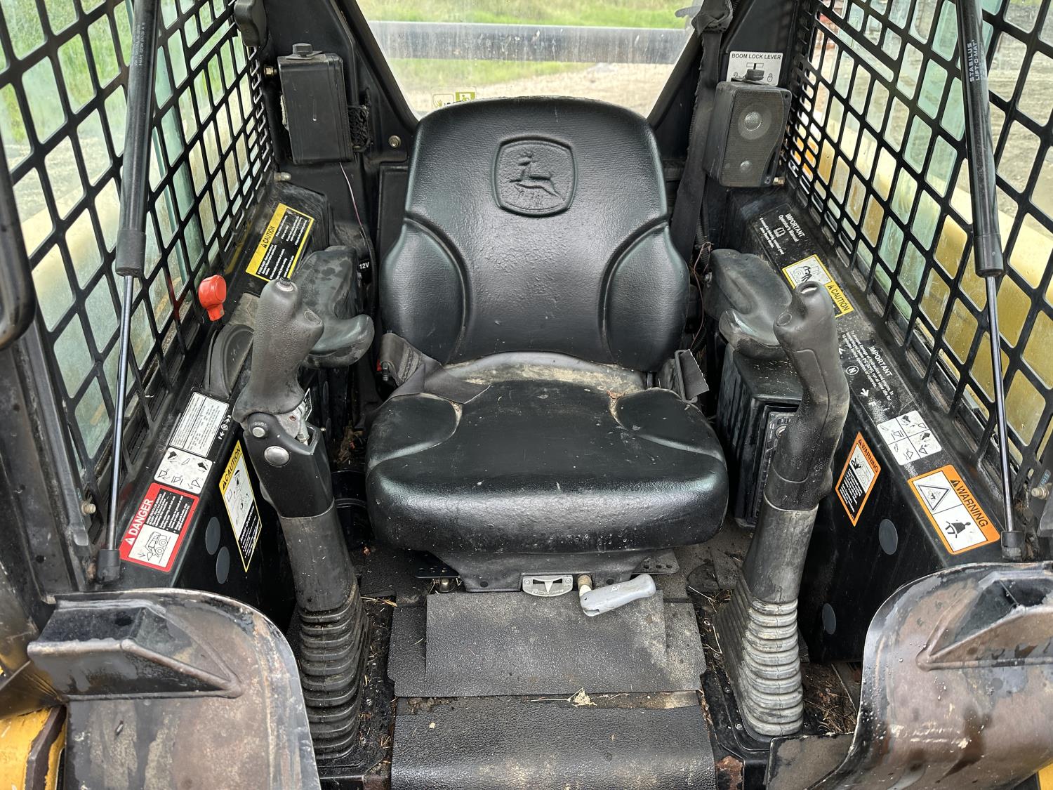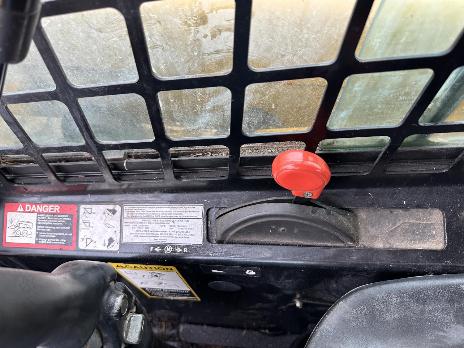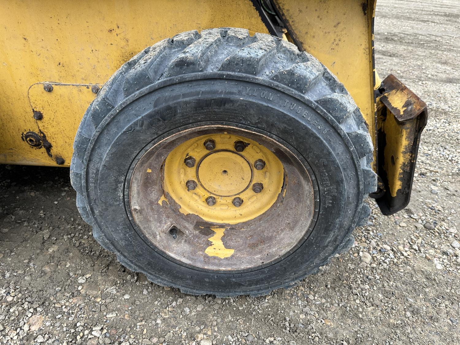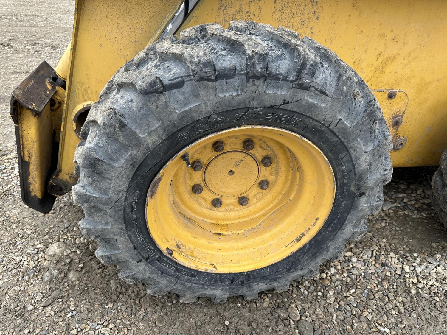 Enclosed cab, A/C, diesel engine, foot & lever control, cab screens, hydraulic Q/C coupler, counter weight, has some fire damage, 10-16.5 tires