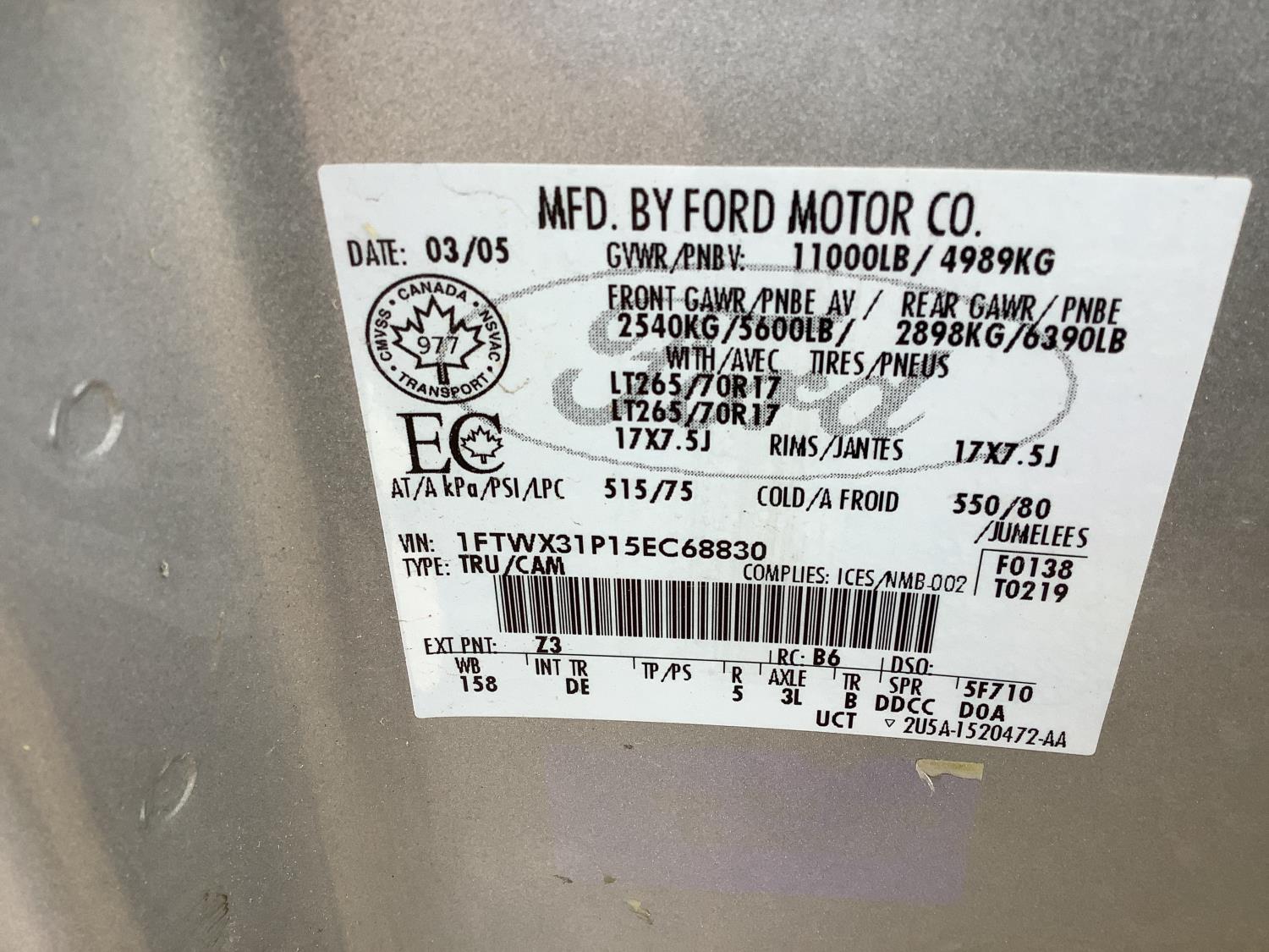 204 2005 Ford F250 Super Duty Extended Cab Pickup Cab