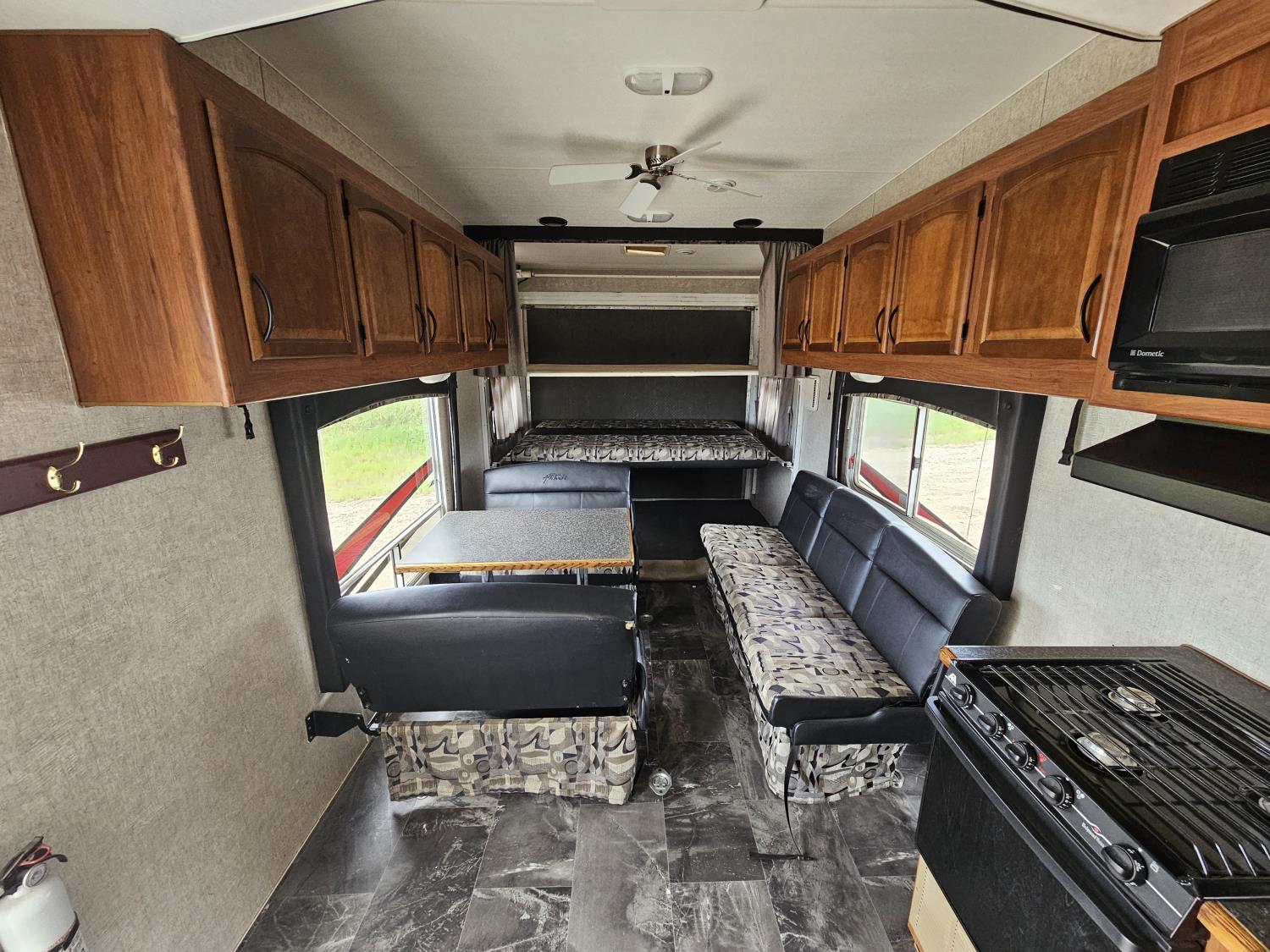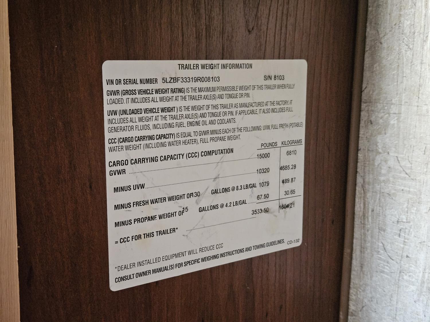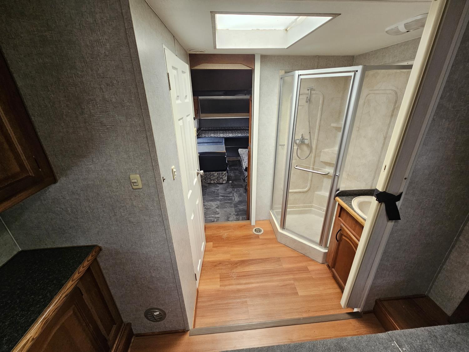 Sleeps 10, stove, fridge, microwave, full bath, master bedroom, bunk beds, A/C, outdoor shower, 1 slide, manual awning, Onan 5500 generator, spring suspension, electric brakes, power adjustable rear bunks, 225/75R15 tires