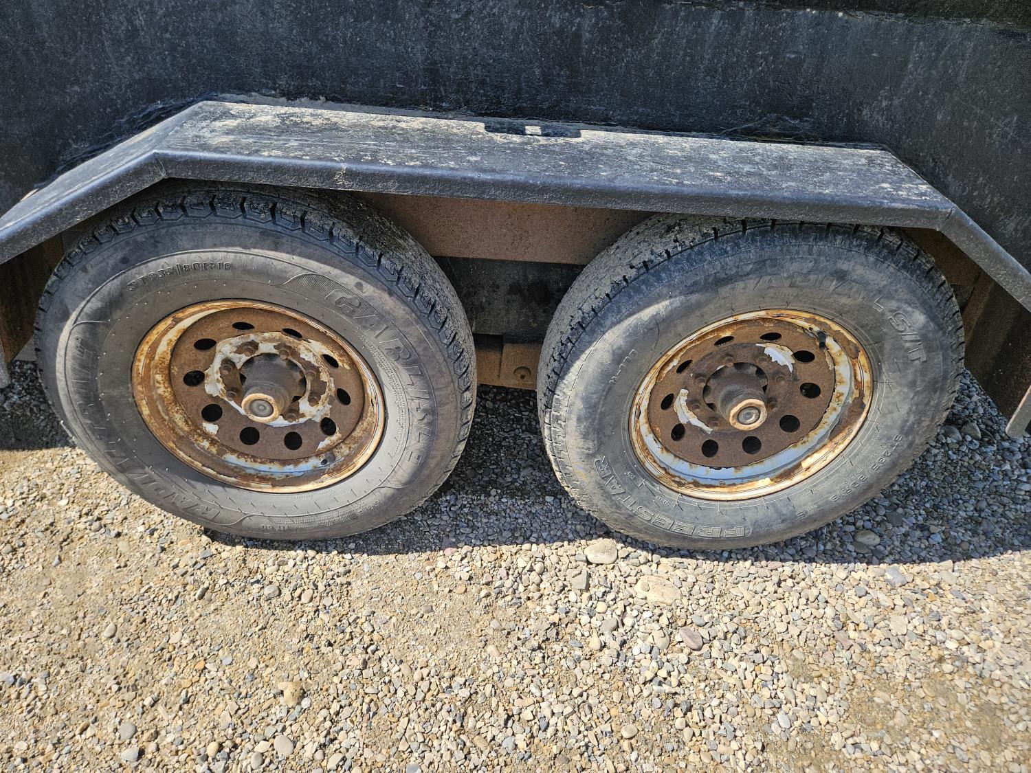 Ball hitch, 83 inch box width, electric brakes, spring suspension, 7,000 lb axles, needs battery, 235/80R16 tires