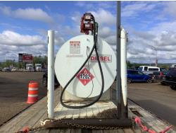 mounted on skids, Fill-Rite 115 Volt electric pump c/w meter hose and auto nozzle and the Nee-Vo wire less tank level monitor system