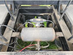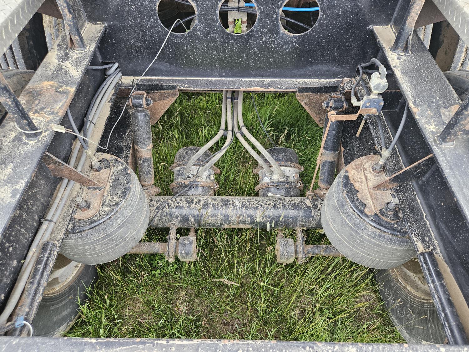 Michel's manual roll tarp, 2 compartment, 2 bottom hoppers, ridewell air ride suspension, aluminum wheels, 11R24.5 tires