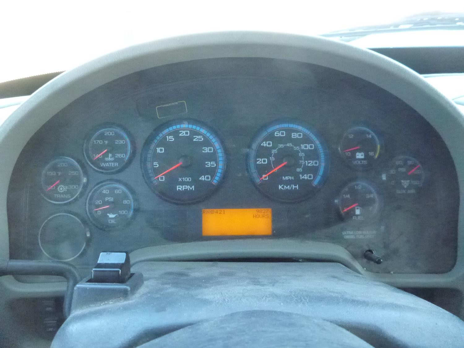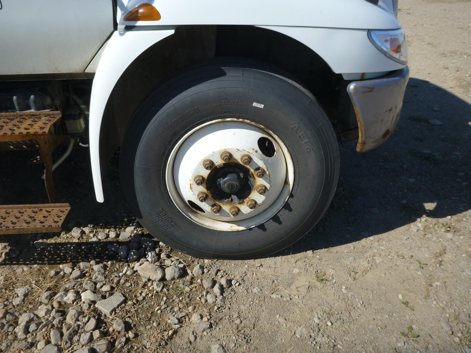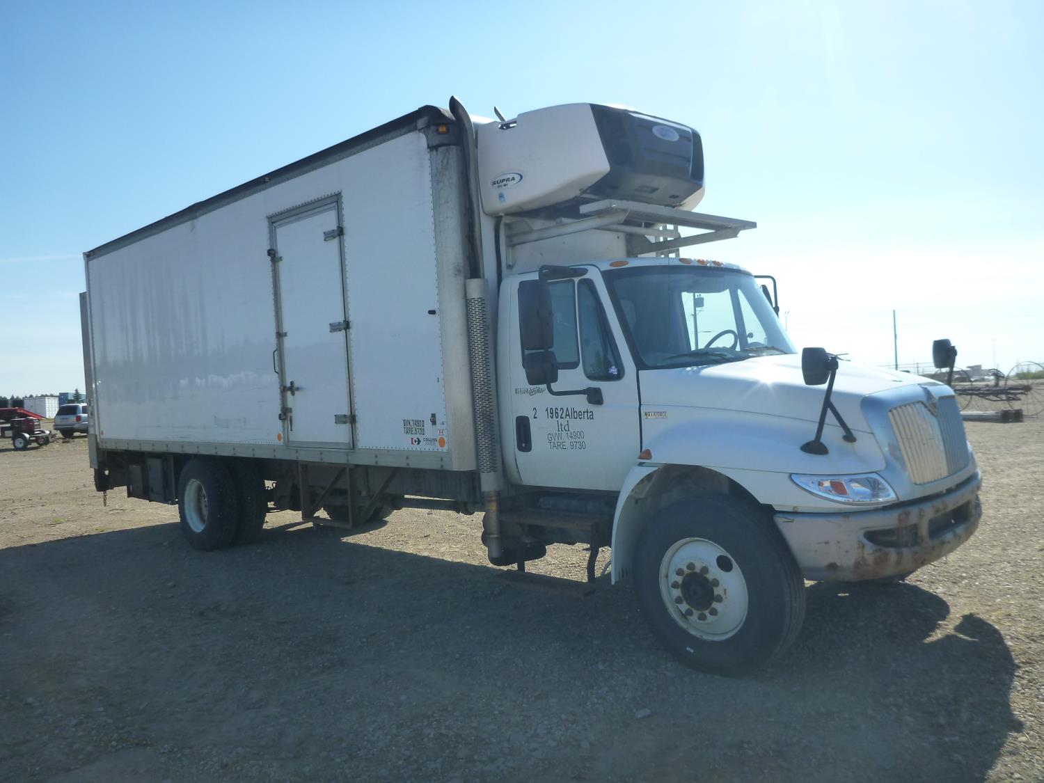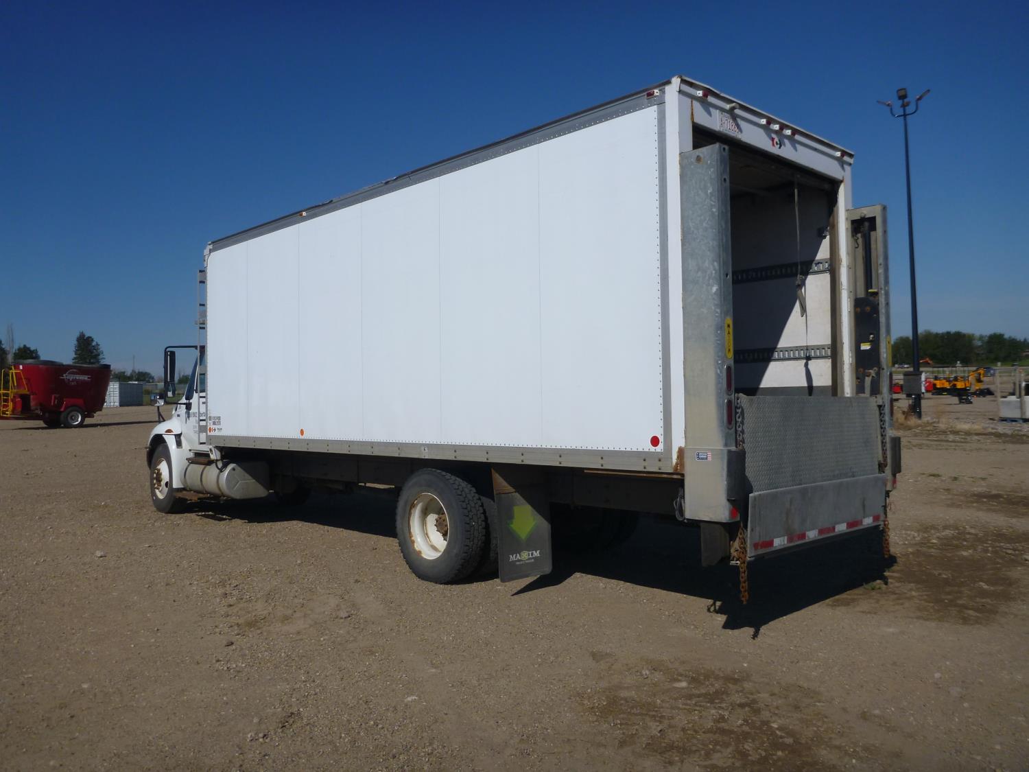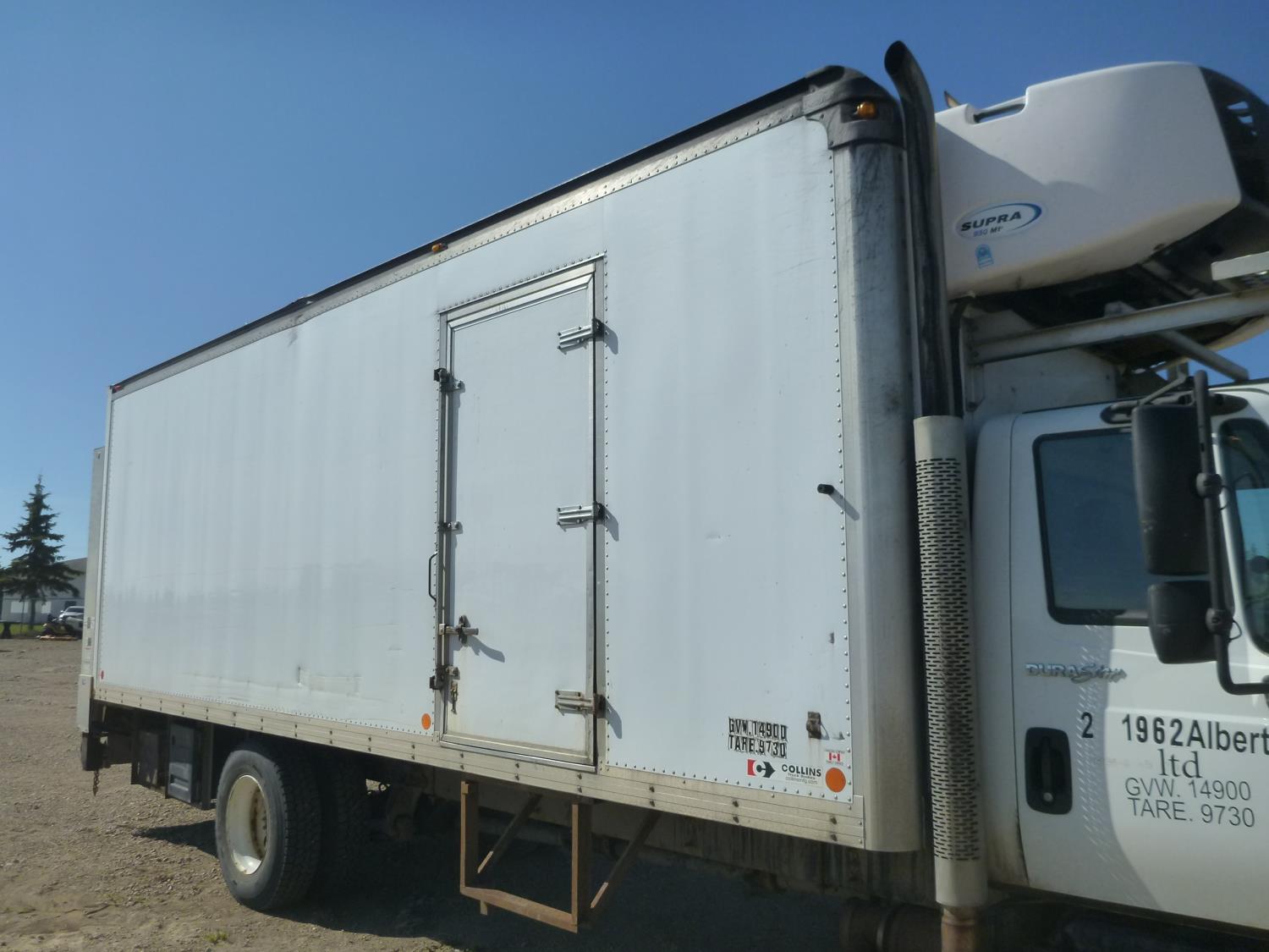 MaxForce diesel engine, automatic transmission, A/C, P/W, air ride driver seat, radio, 25 ft van, 12,000 lb front axle, 21,000 lb rear axles, Collins box, power lift gate, Carrier reefer with 15893, 11R22.5 tires