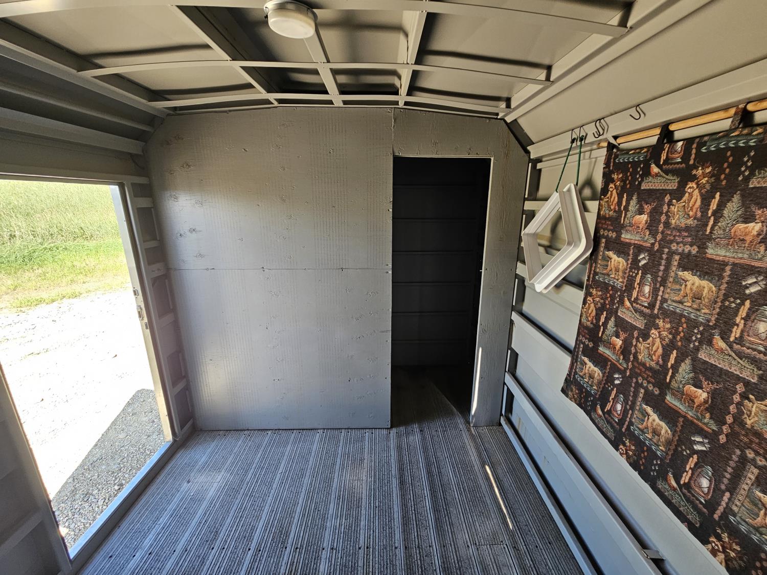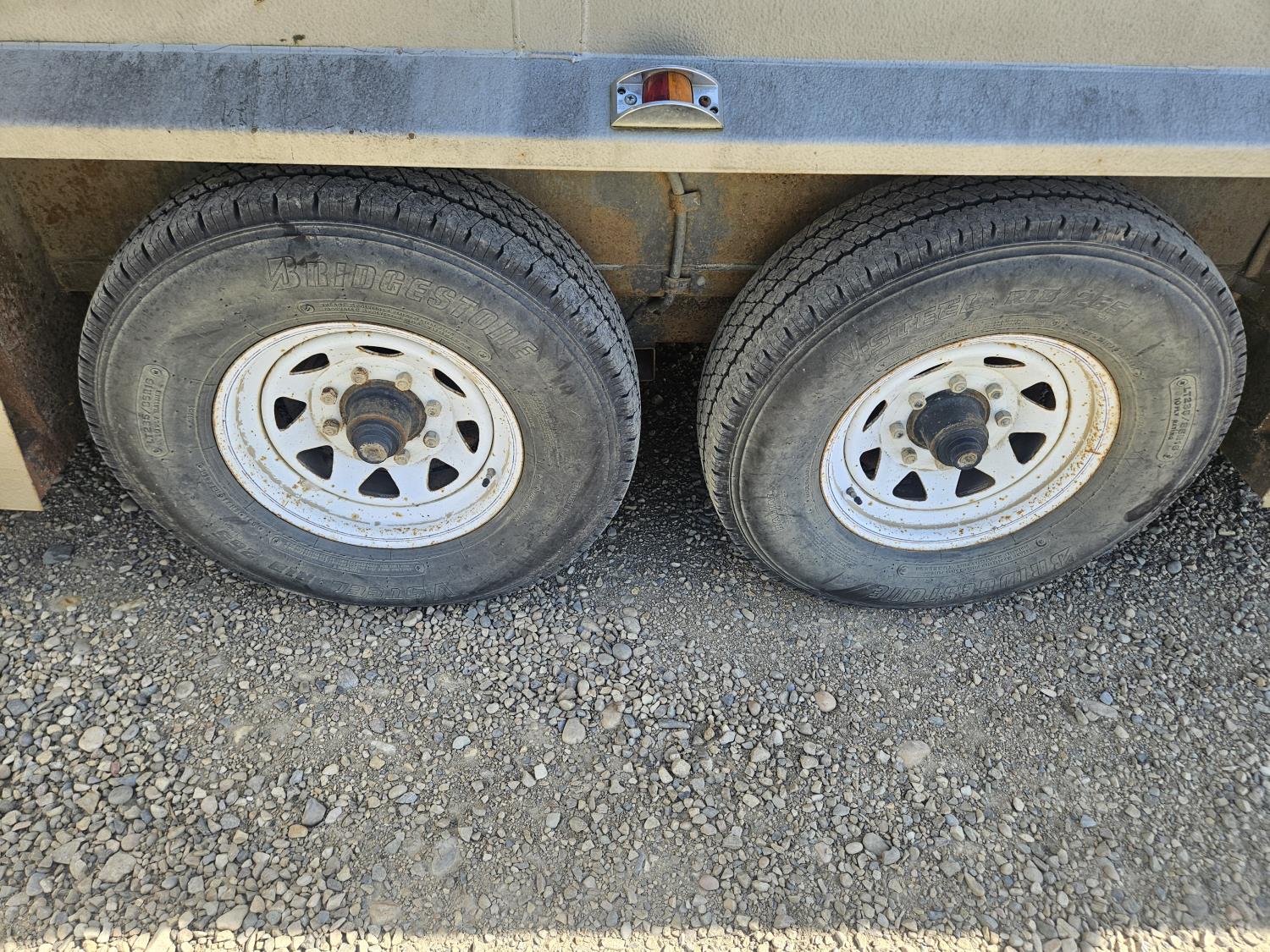 12 ft livestock section, 88 inch high, 95 inch wide, rear swinging door, tack room, saddle racks, storage/living area, windows, vents, 7000 lb axles, torsion suspension, 235/85R16 tires