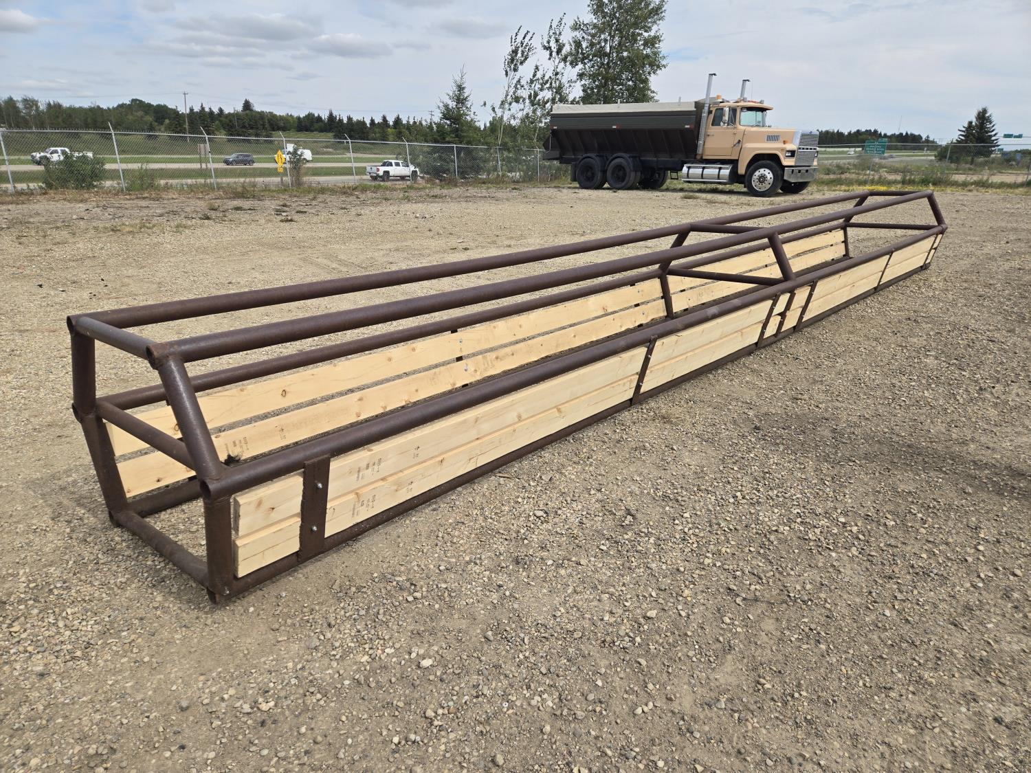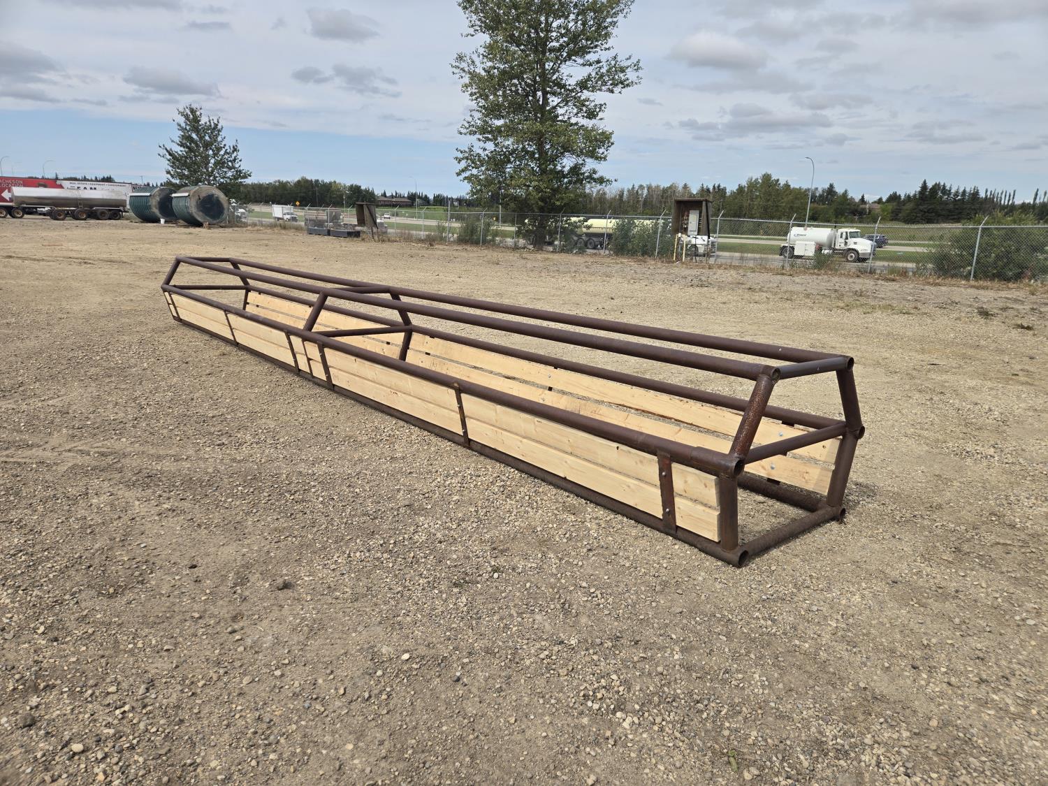 28 ft long silage bunk feeder made from 2-7/8 inch drill stem, all new boards