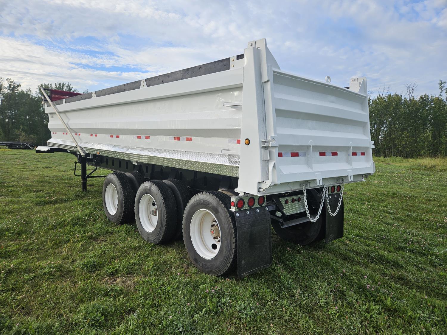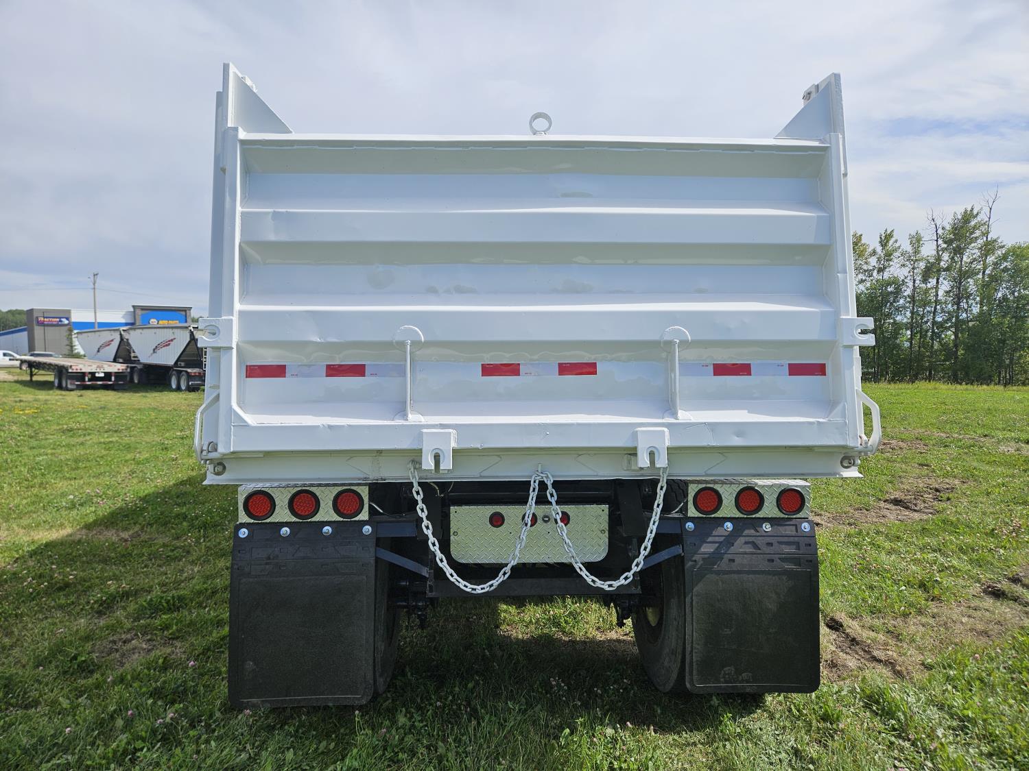 8 ft box width, 54 inch side wall height, roll tarp, spreader chains, air tail gate, air brakes, air ride suspension, 22,500 lb axles, 11R24.5 tires
