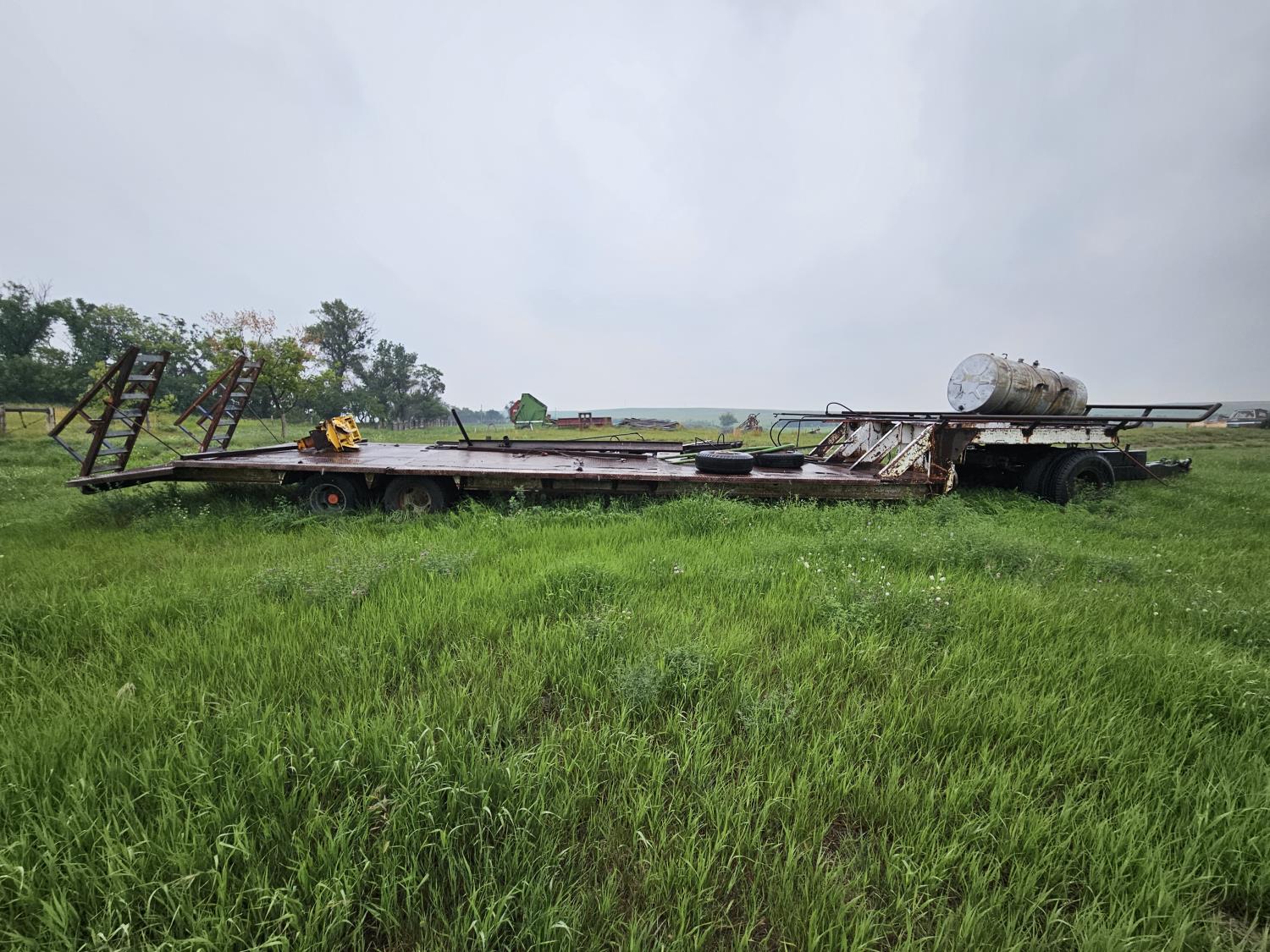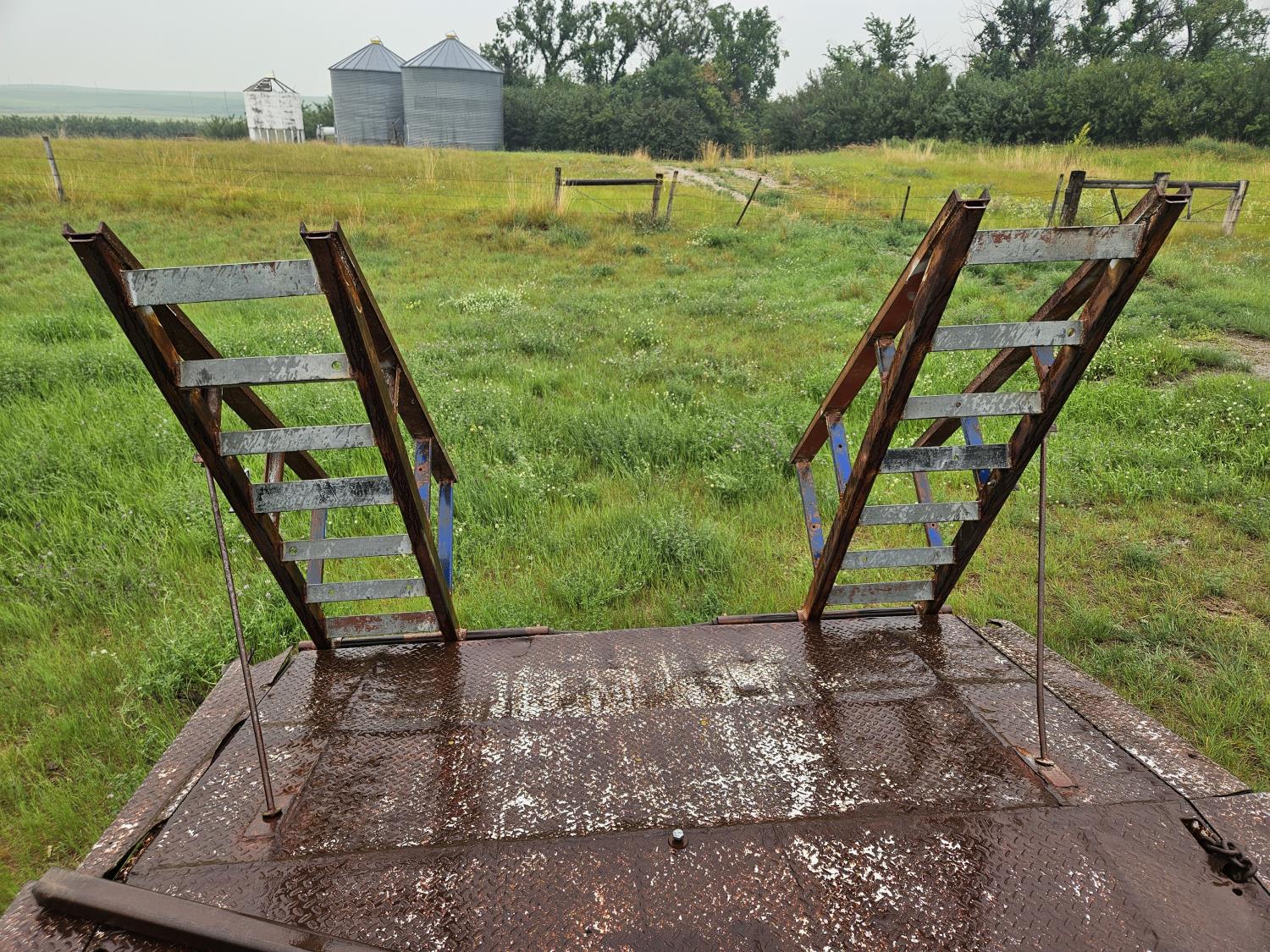 All contents on deck are sold with the trailer, hoist, 500 gallon fuel tank, crop dividers.