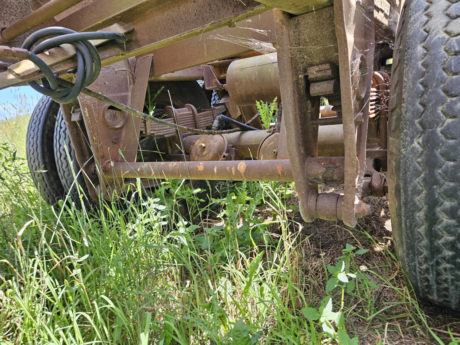 96 inch wide deck, wood deck, stake pockets, cargo winches, Bale decks sold separately, spring suspension, 10.00-22 tires