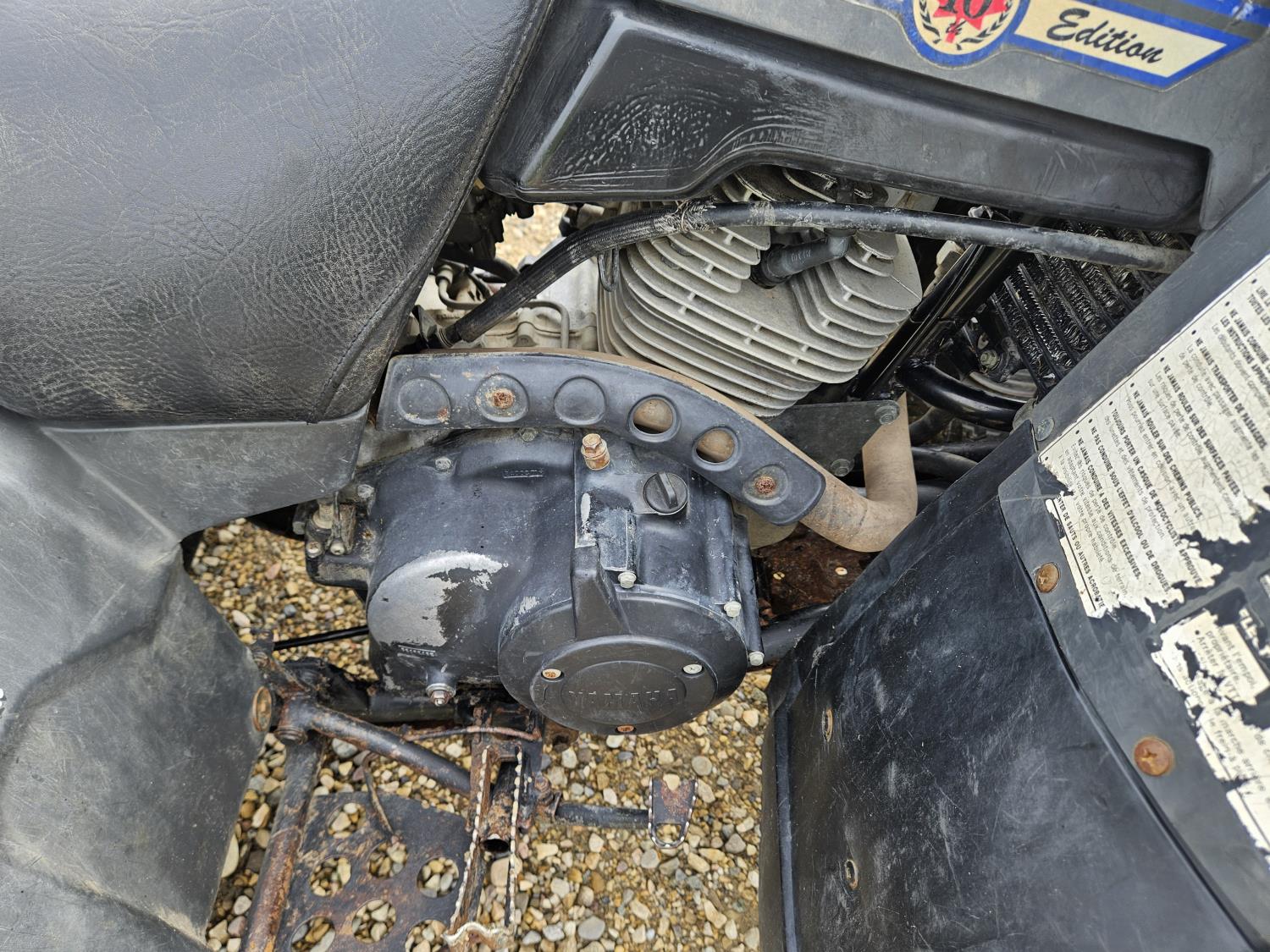 350 cc engine, manual transmission, Hi/Lo range, reverse, hitch, front and rear racks, front winch, 25X8.00-12 front tires, 25X10.00-12 rear tires
