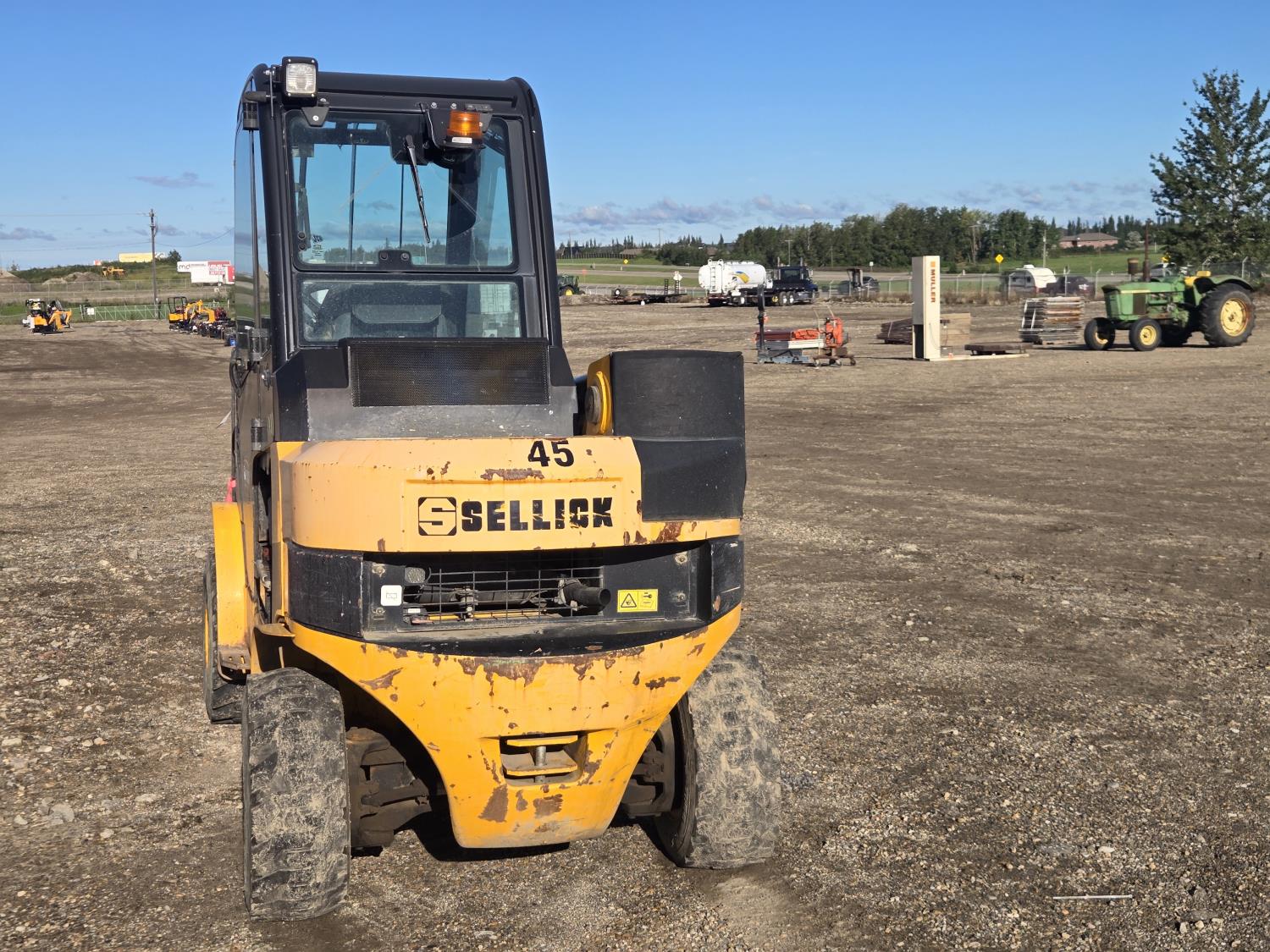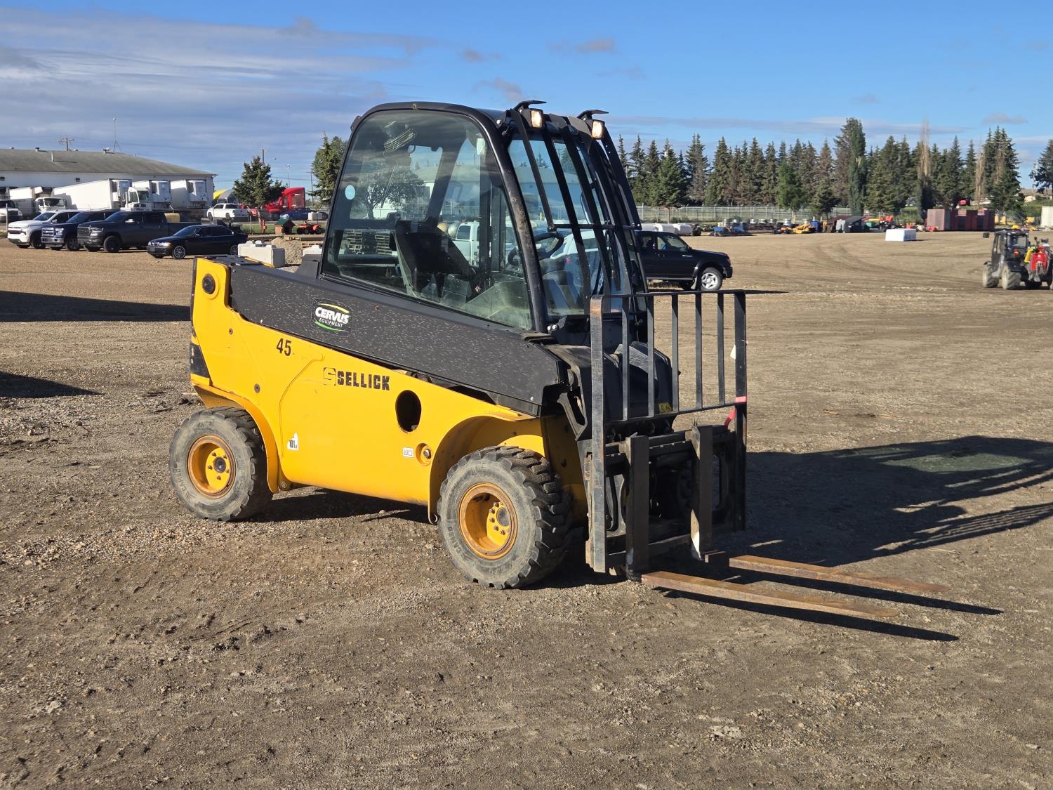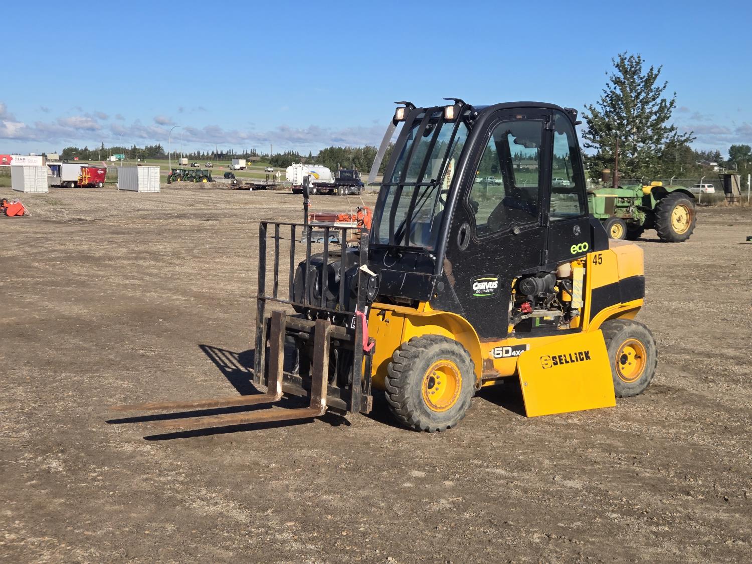 48 inch forks, side shift, 14 ft max lift, 250/75-12 tires