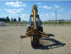 Enclosed cab, 4 speed hydro transmission, 88 inch smooth loader bucket, 24 inch dig backhoe bucket, manual coupler, 2 front auxiliary hydraulics, 2 rear auxiliary hydraulics, outriggers, 4-in-1 front bucket, extendable boom, 12.5/50-18 front tires, 19.5L-24 rear tires