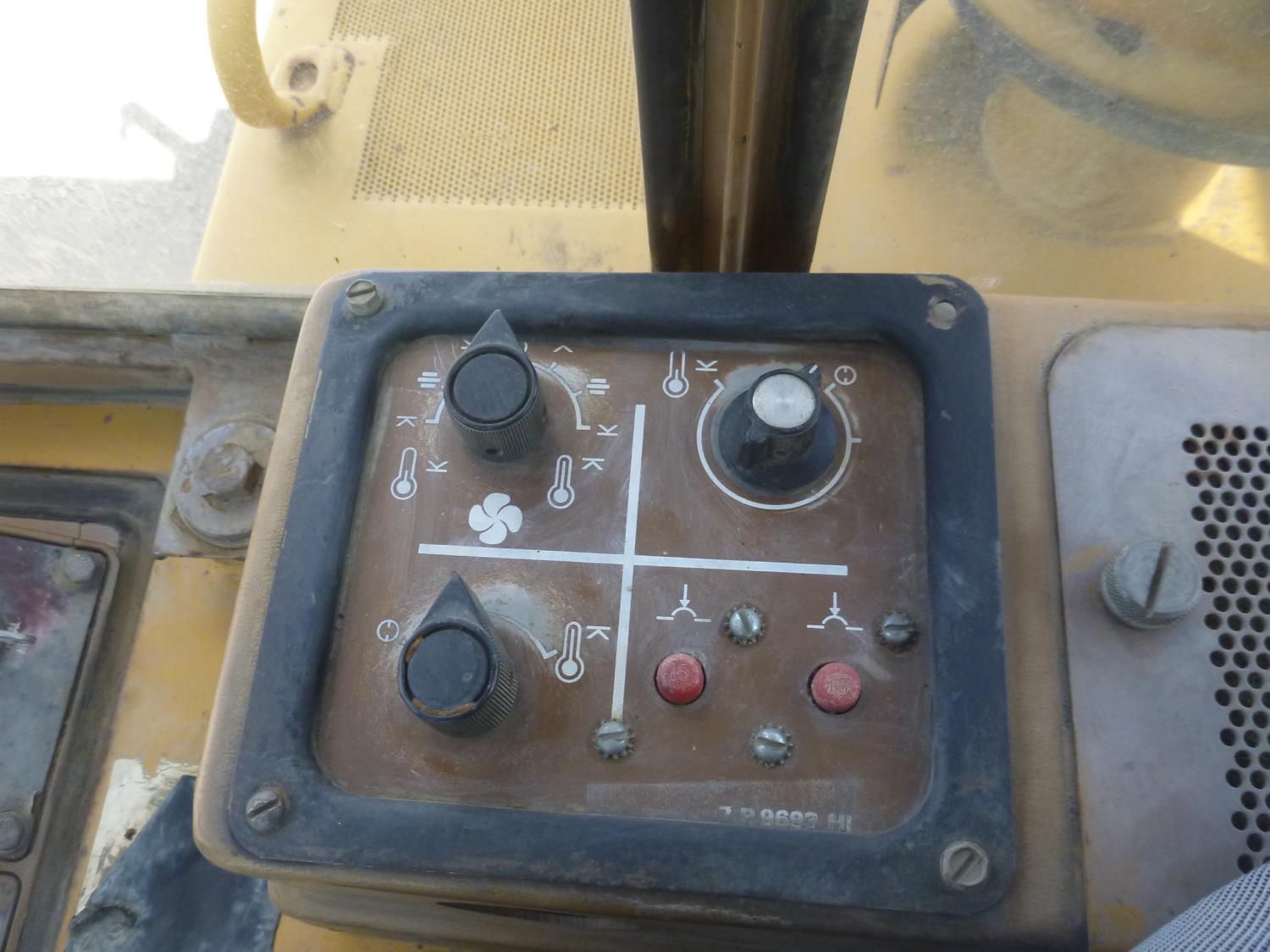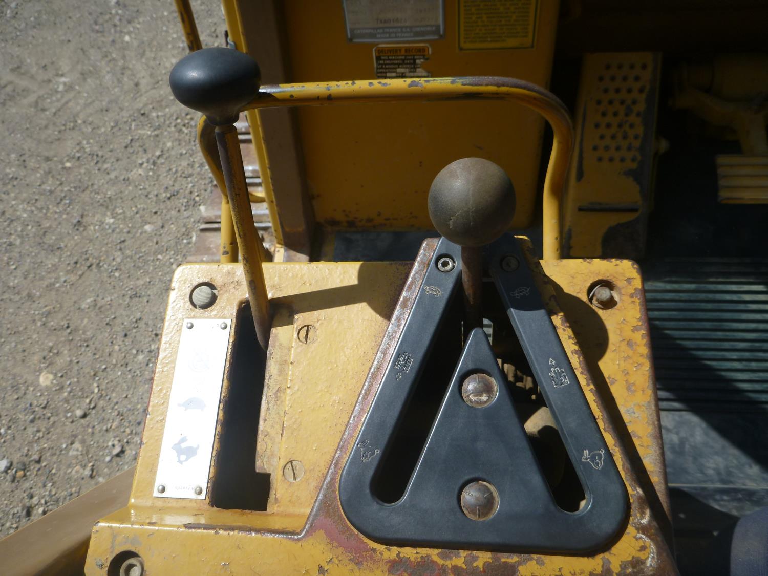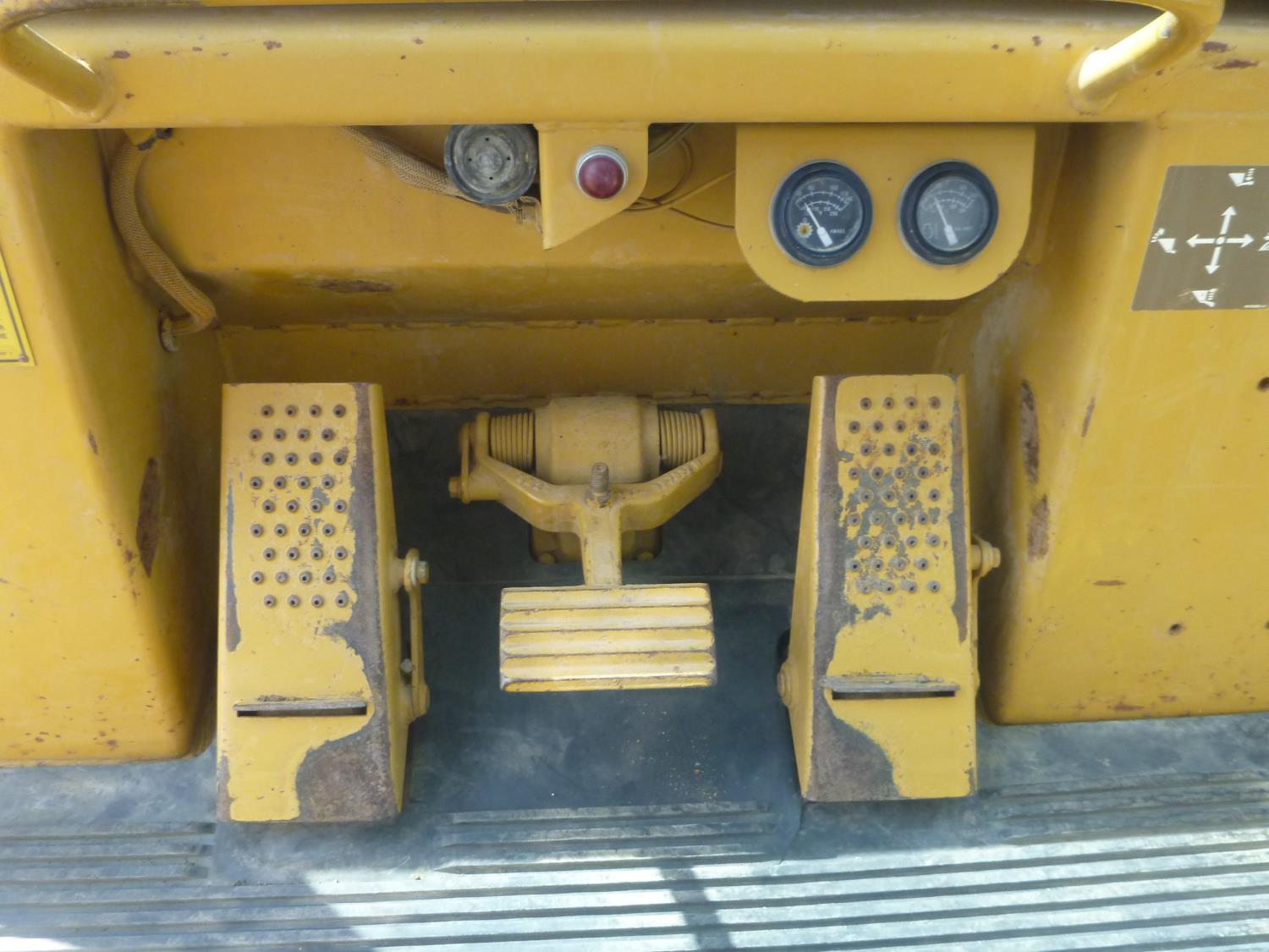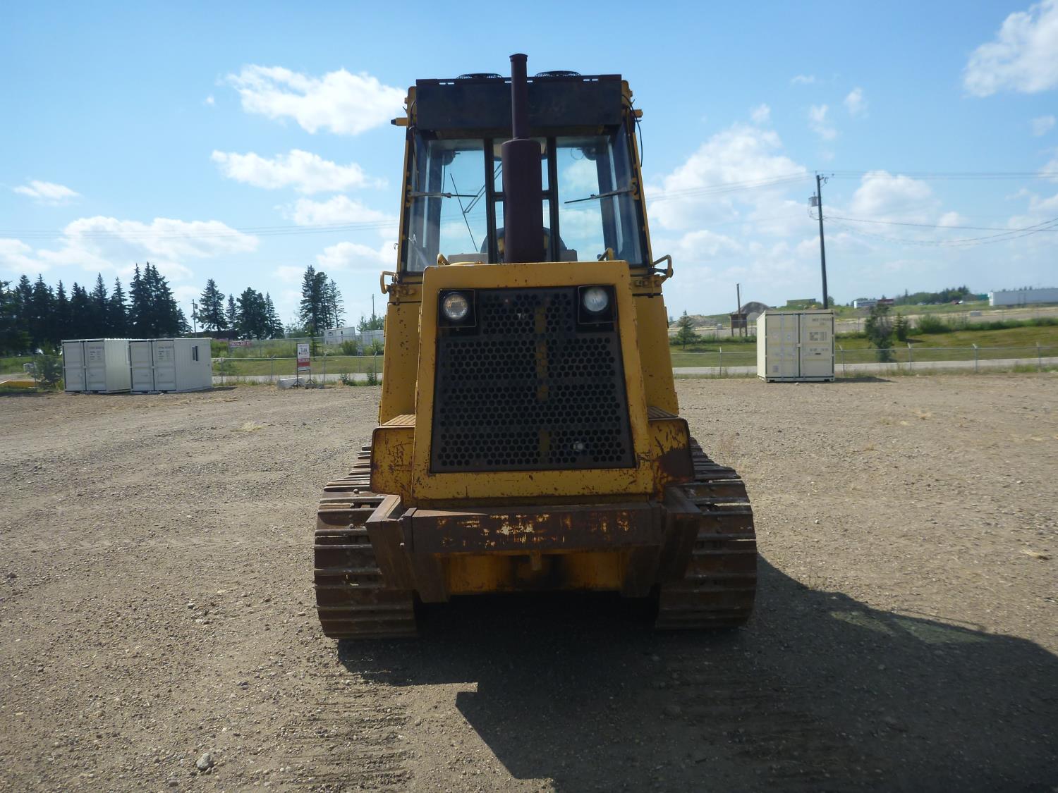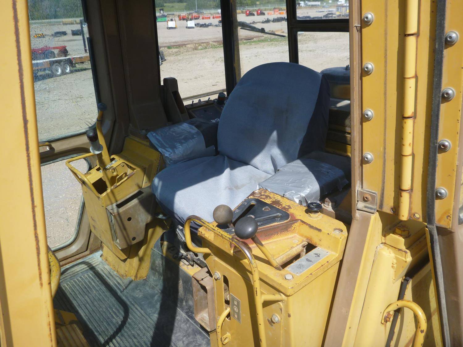 Enclosed cab, hydro transmission, Caterpillar 3204 engine, cracked side glass, 94 inch toothed bucket, 20 inch track pads, double grousers