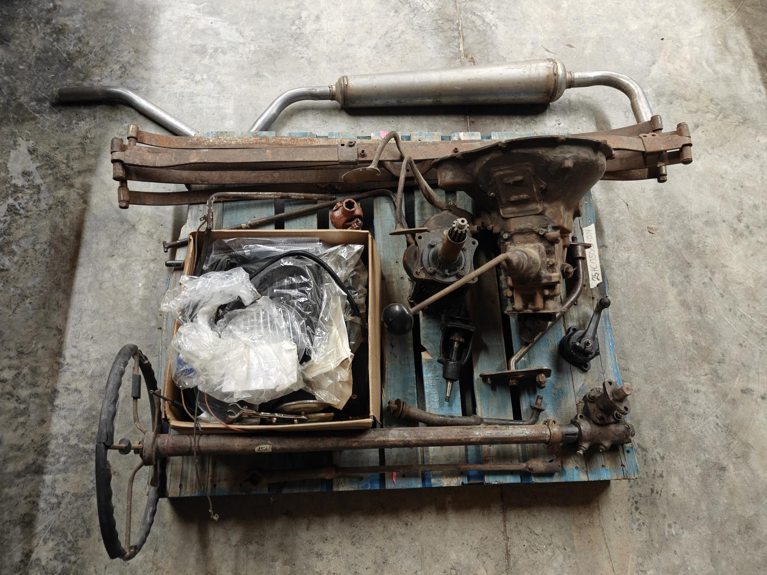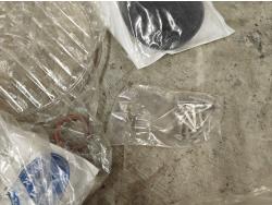 bumper, steering column, glass light cover, muffler, side mirror