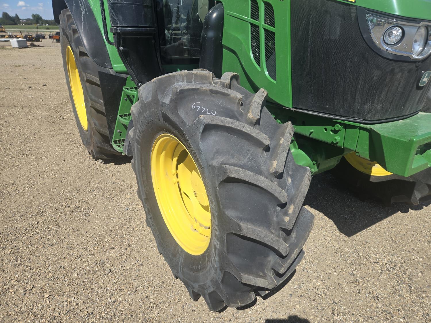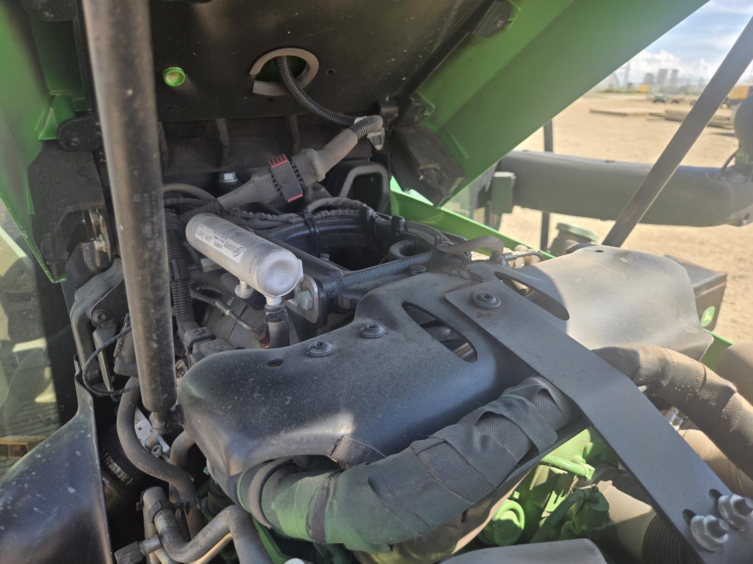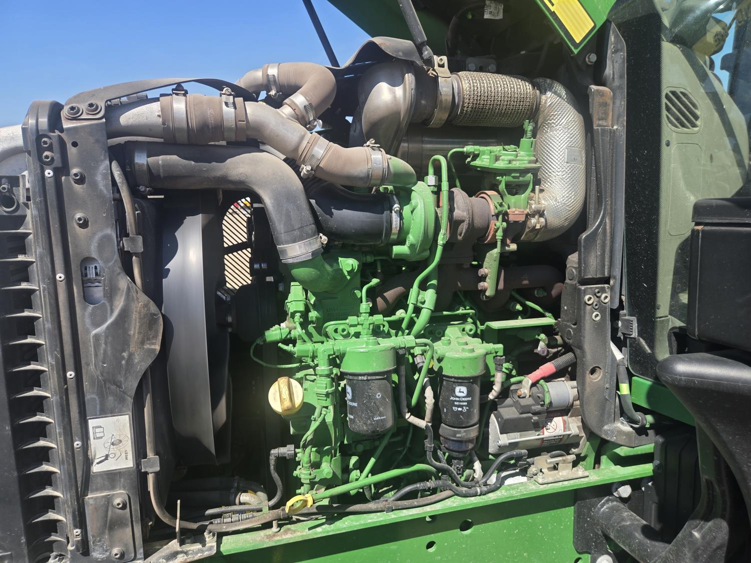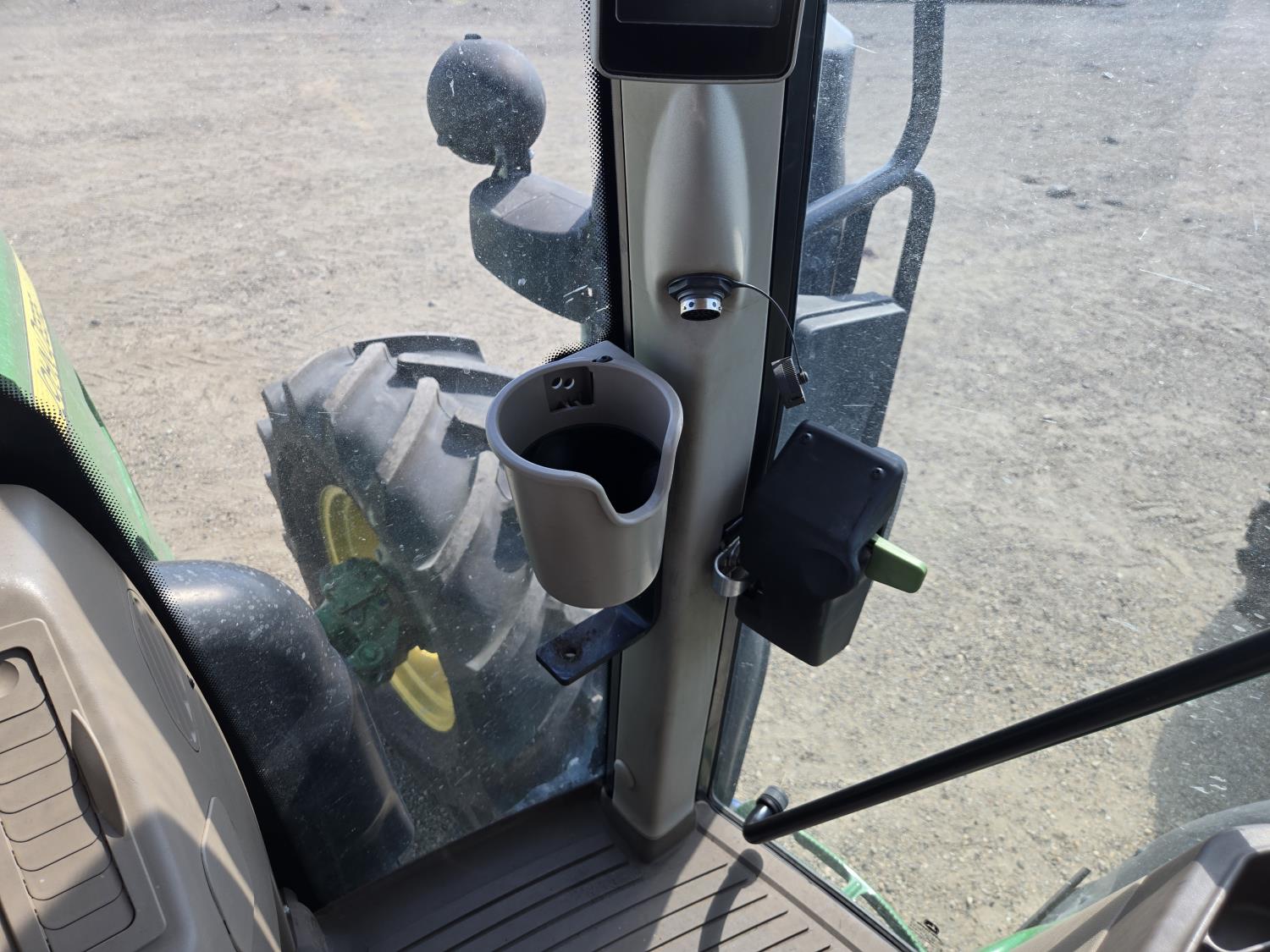 John Deere 4.5 L 4 cylinder 110 HP, diesel engine, 24 speed partial power shift transmission, cab, left hand reverser, rear differential lock, A/C, radio, GPS ready, 540/1000 PTO, 3 point hitch, 3 point hitch exterior control, 3 rear hydraulic outlets, joystick, (3) Mid hydraulics, loader ready, front weight bracket, 420/70R24 front tires, 520/70R34 rear tires