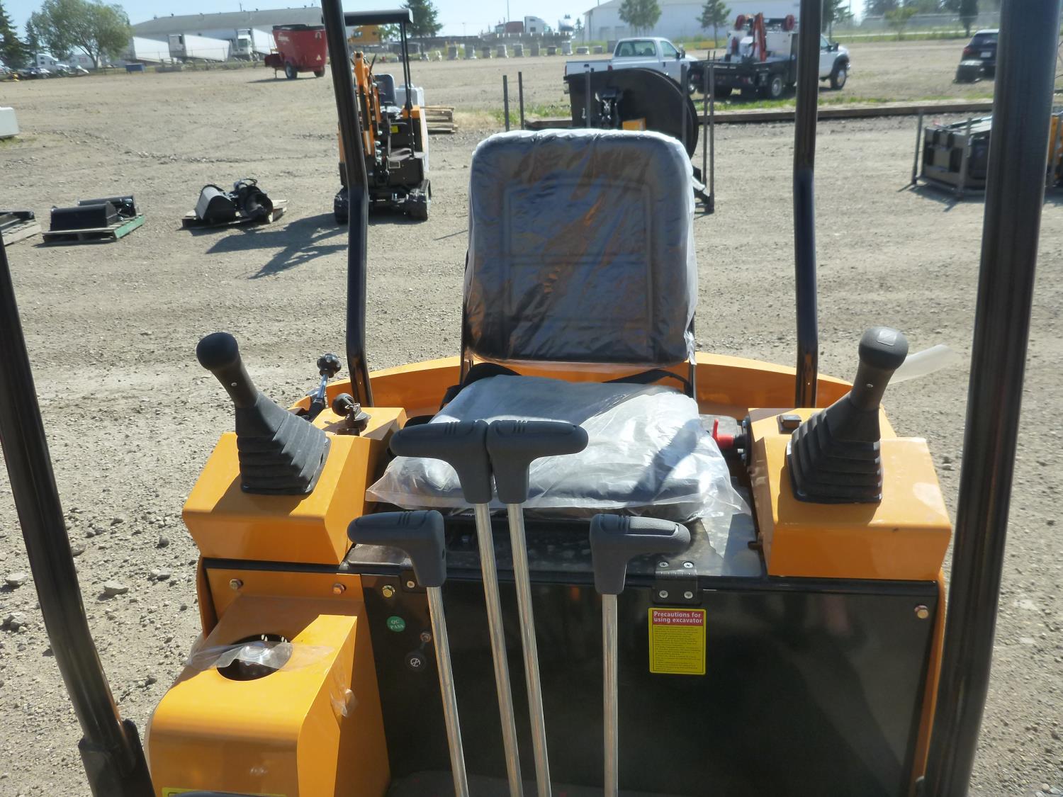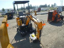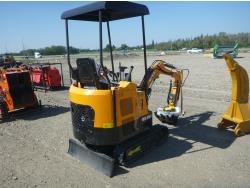 Open station, 13.5 HP gas engine, dig bucket, manual thumb, 2 auxiliary hydraulics, backfill blade, rubber tracks