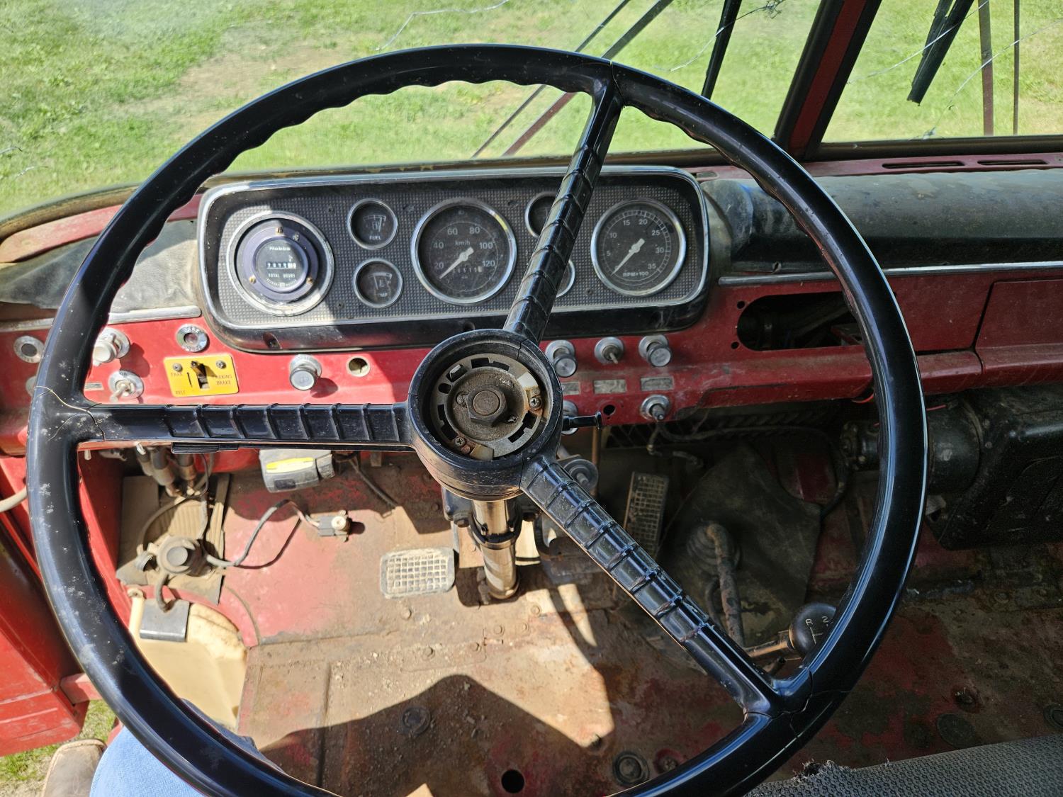 Ford 8.2 L diesel engine, 5x2 Manual transmission, 5th wheel pin hitch, 8 ft 6 inch x 13 ft deck, 2016 SWS 13' x 8.5' deck, 11R22.5 tires