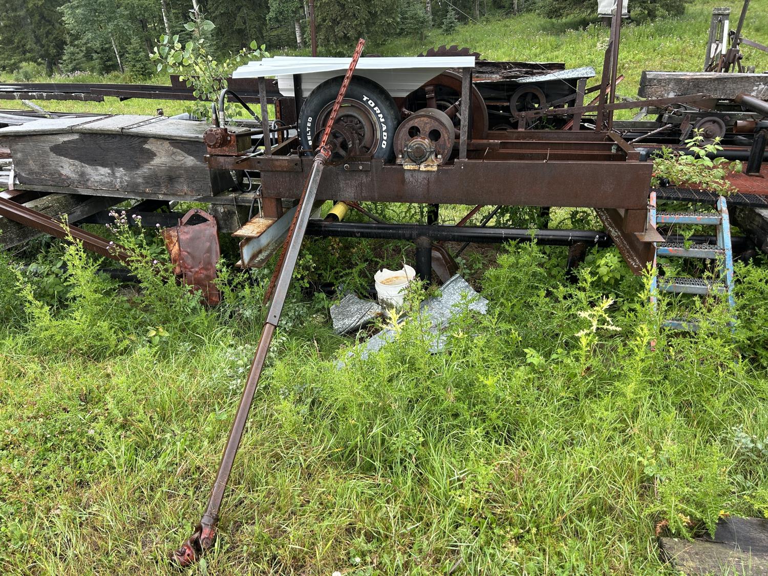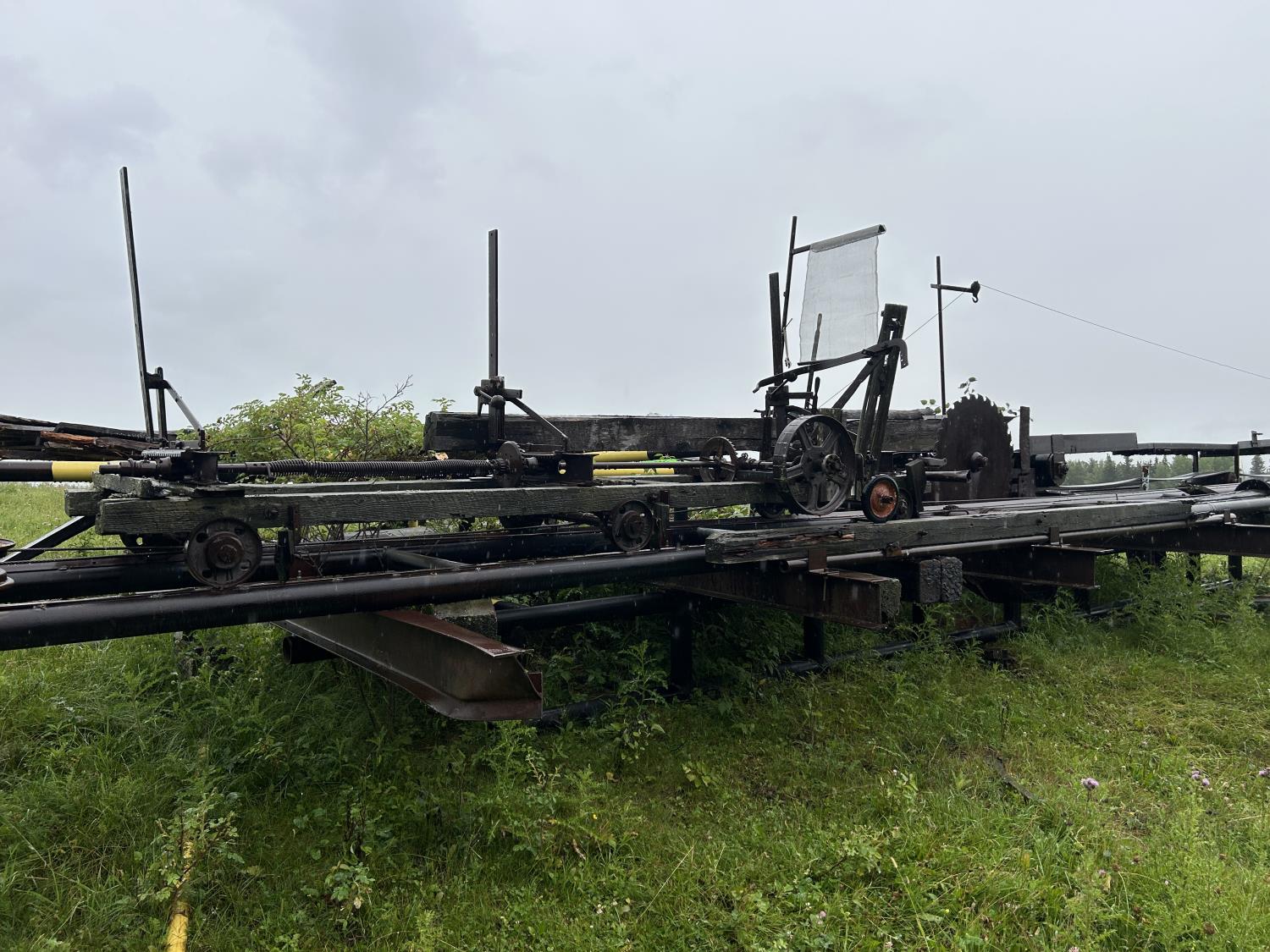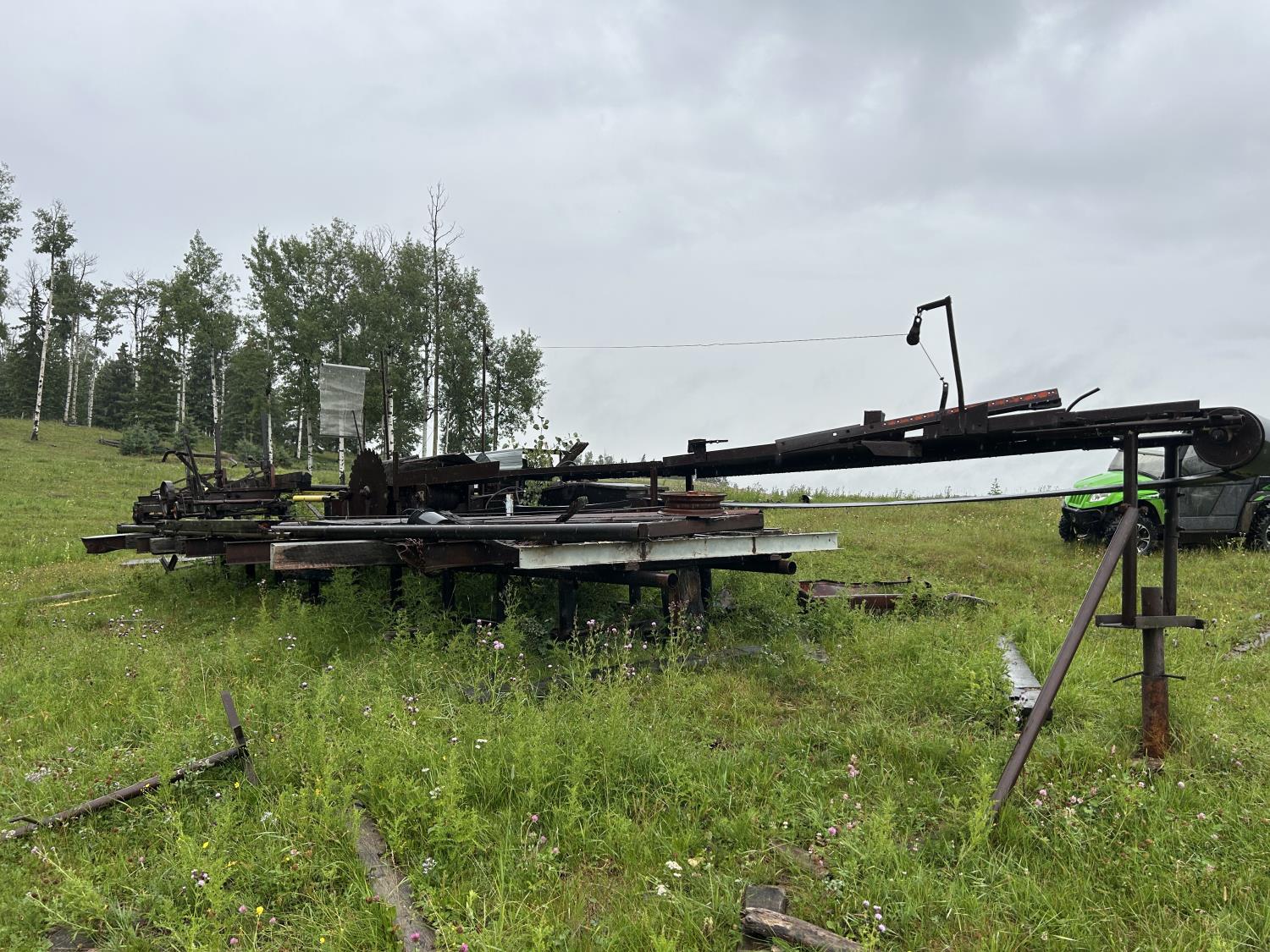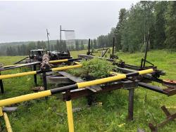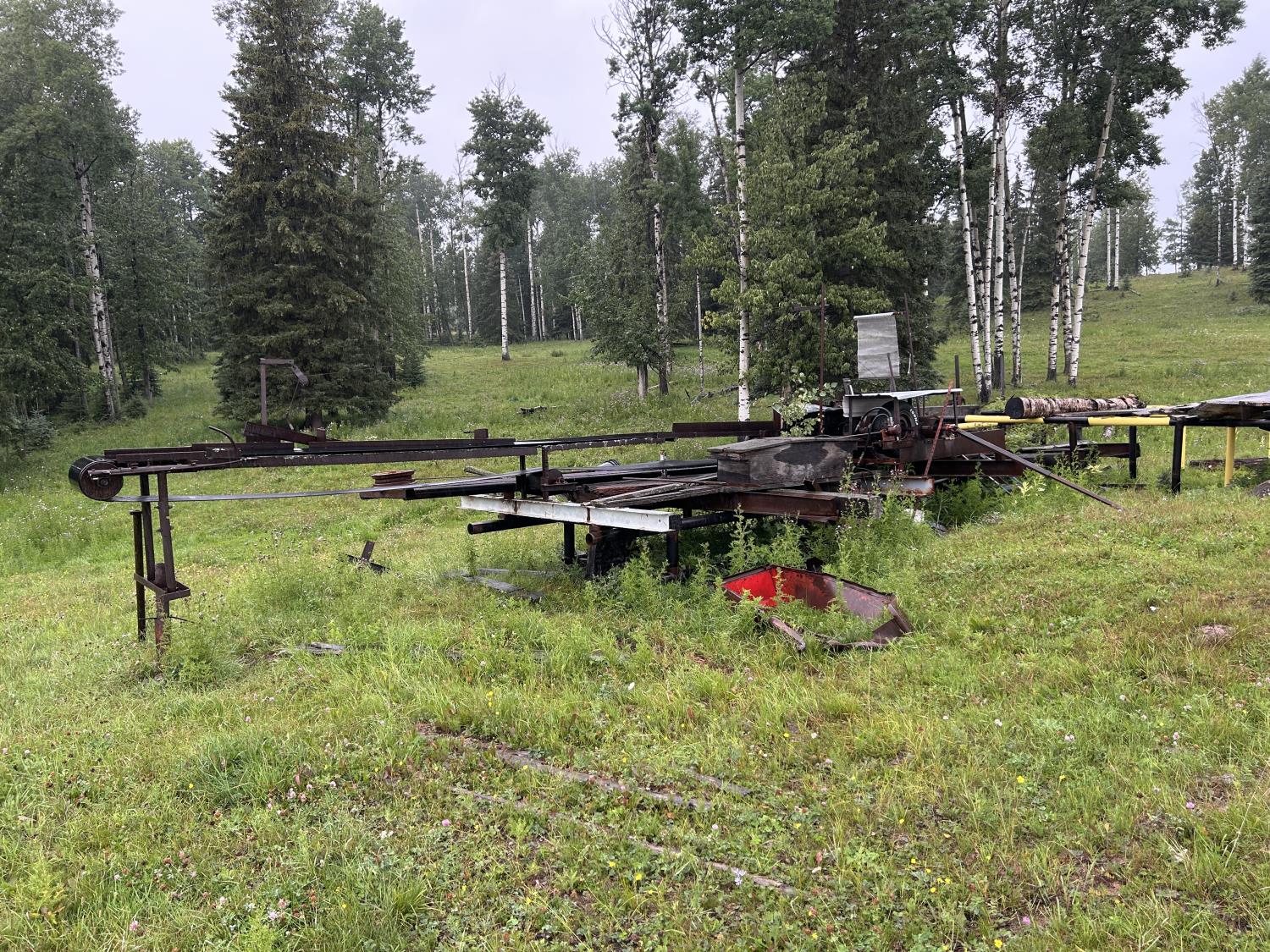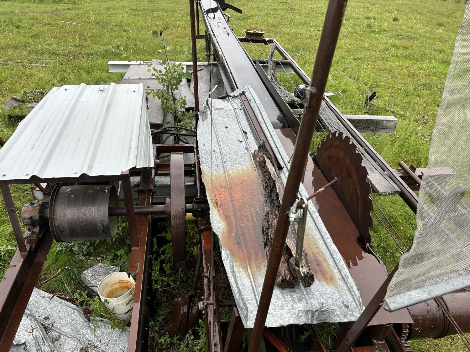 PTO drive sawmill with hydraulic drive conveyor. Pipe rack/stand included