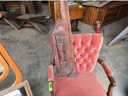 1962 (1) Upholstered Chair, Free Standing Lamp, Gun Case & (4) Wall Hangings