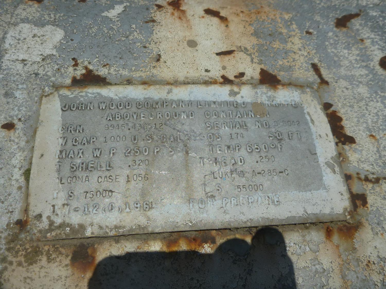 2246 1000 Gallon Propane Tank