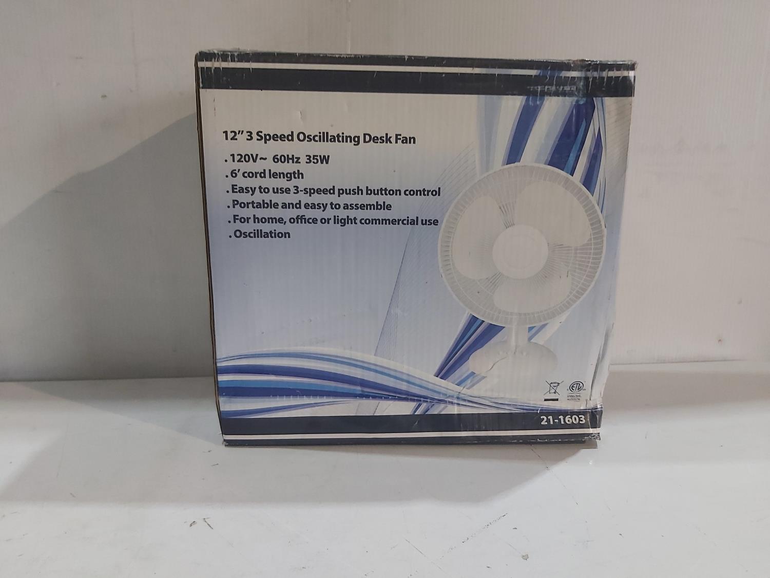 1131 12 Inch 3 Speed Oscillating Desk Fan (Unused)