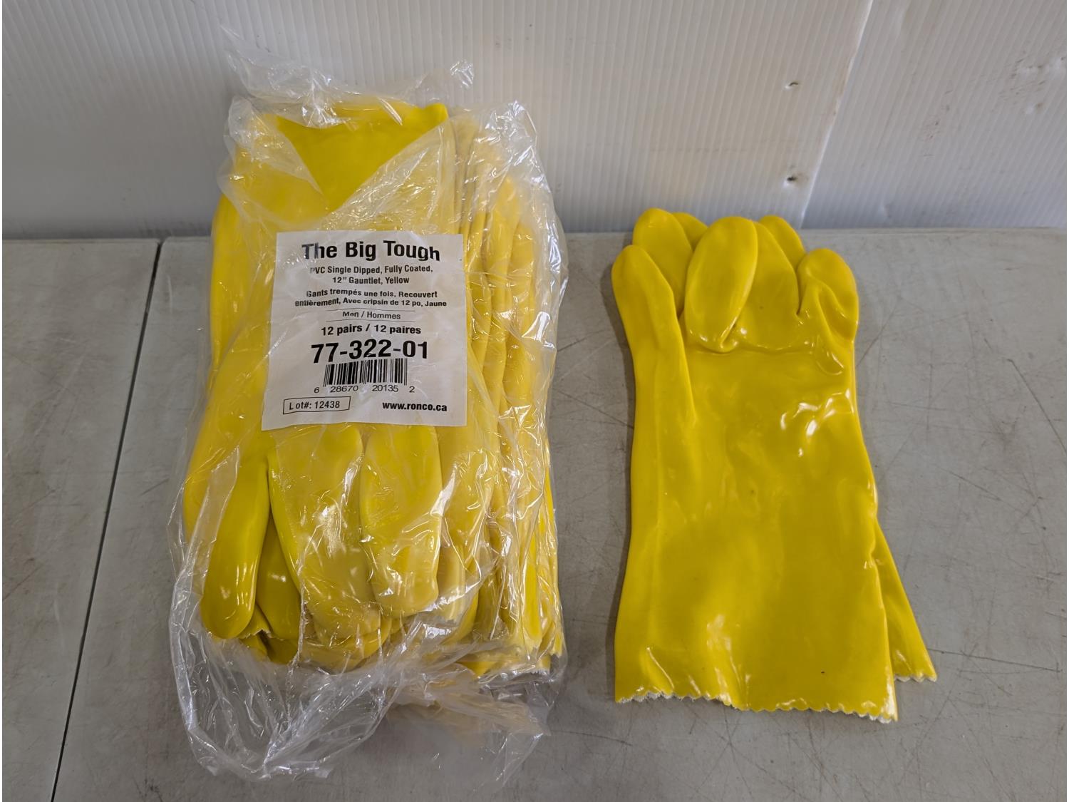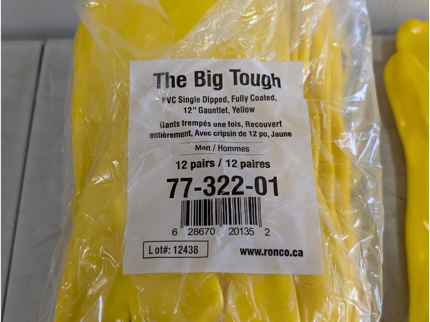 1672 (12) Pairs of the Big Tough PVC Dipped 12 Inch Gauntlet Gloves (Unused)