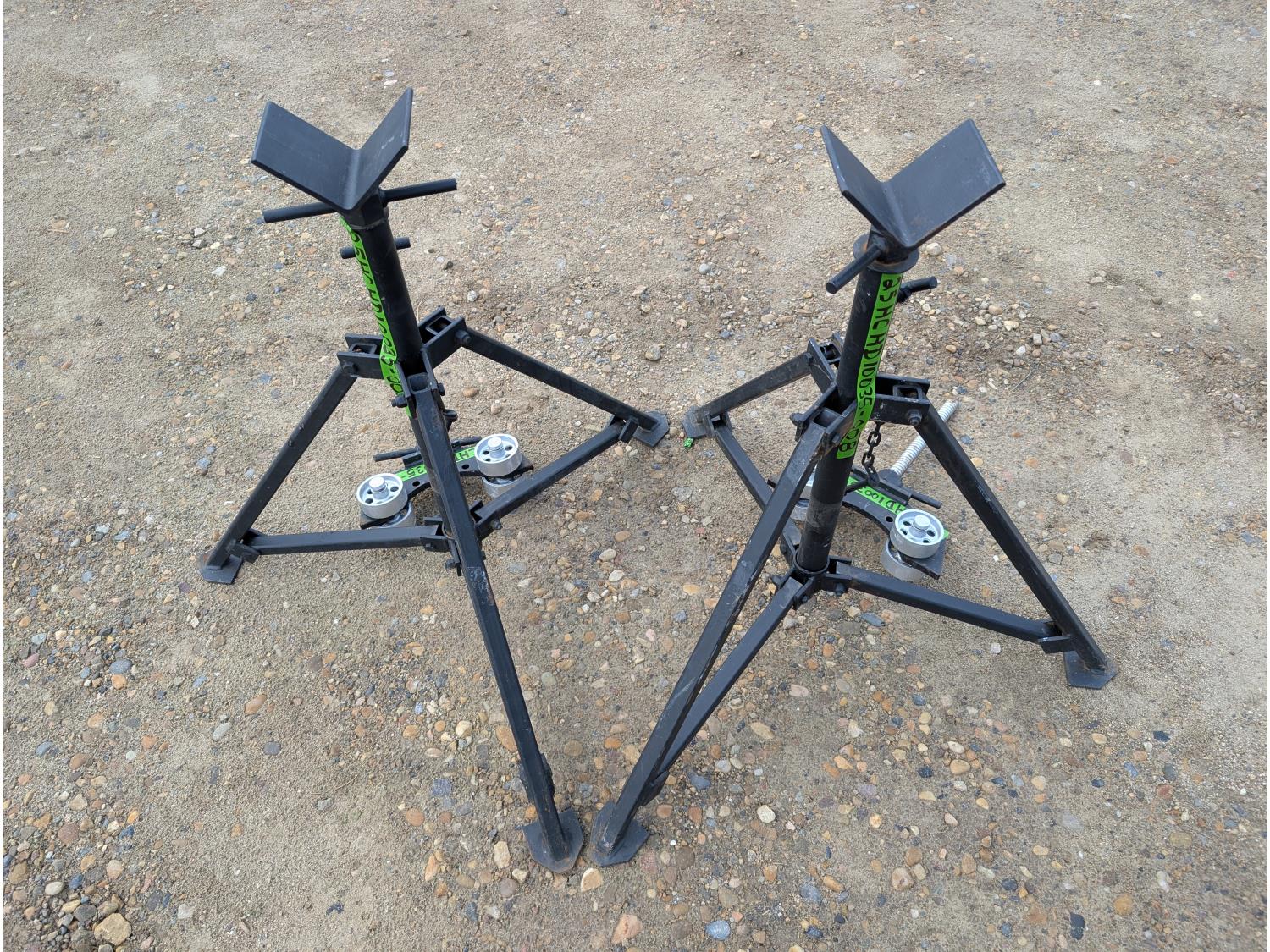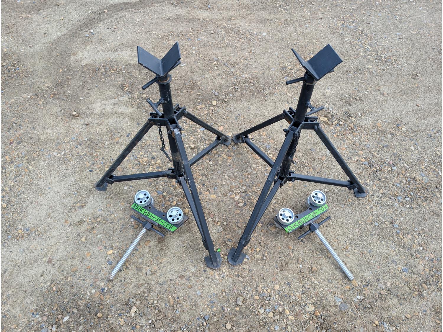 1319 (2) 3500 lb 36 Inch Pipestands with Heavy Duty V-Blocks and Pipe Stand Rollers