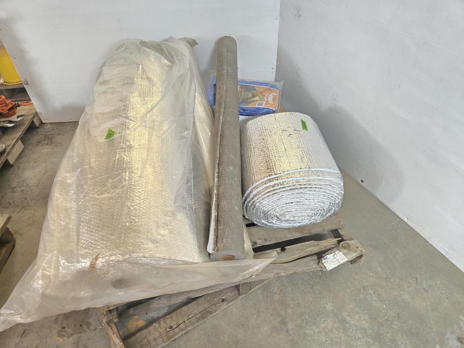 1902 (2) Rolls of Insulation, (1) Roll House Warp, 12 Ft X 16 Inch Unused Tarp