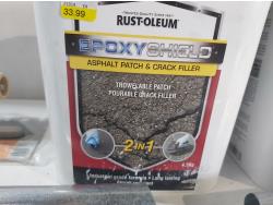 1036 (2) Rust-oleum Epoxy Shield Asphalt Patch, (4) 9 Inch Adhesive Spreaders, Steel Trowel and 38 mm Margin Trowel (Unused)