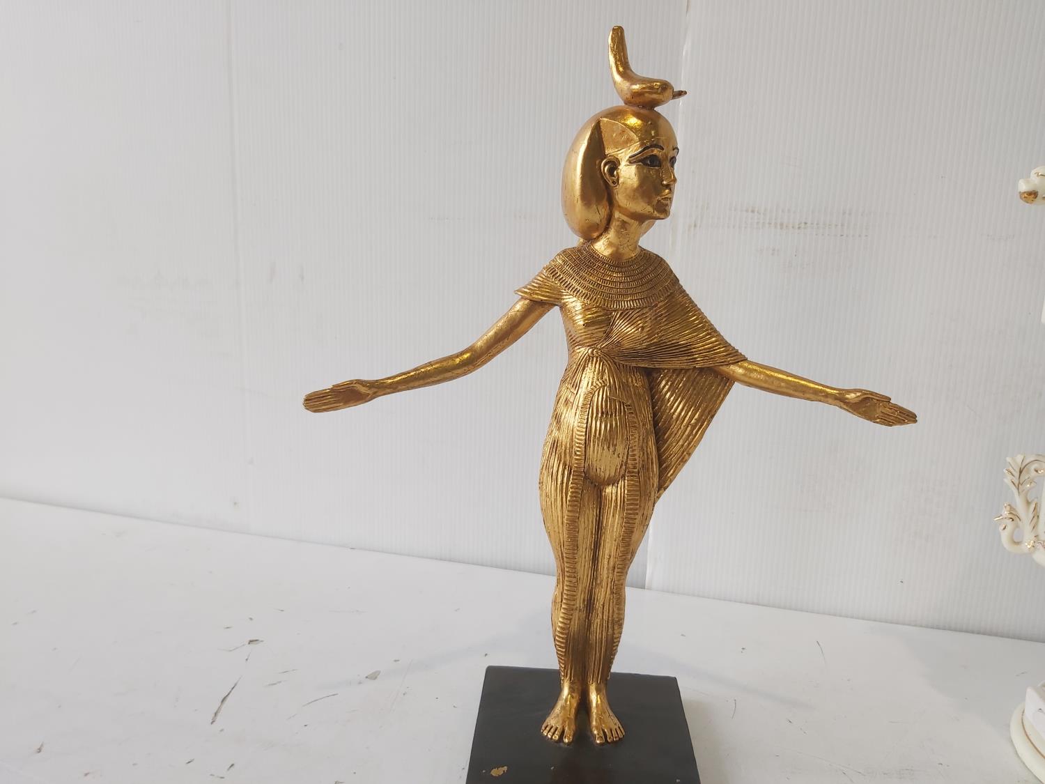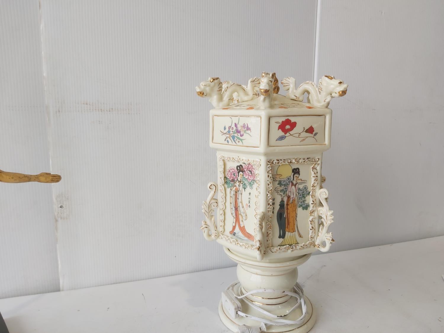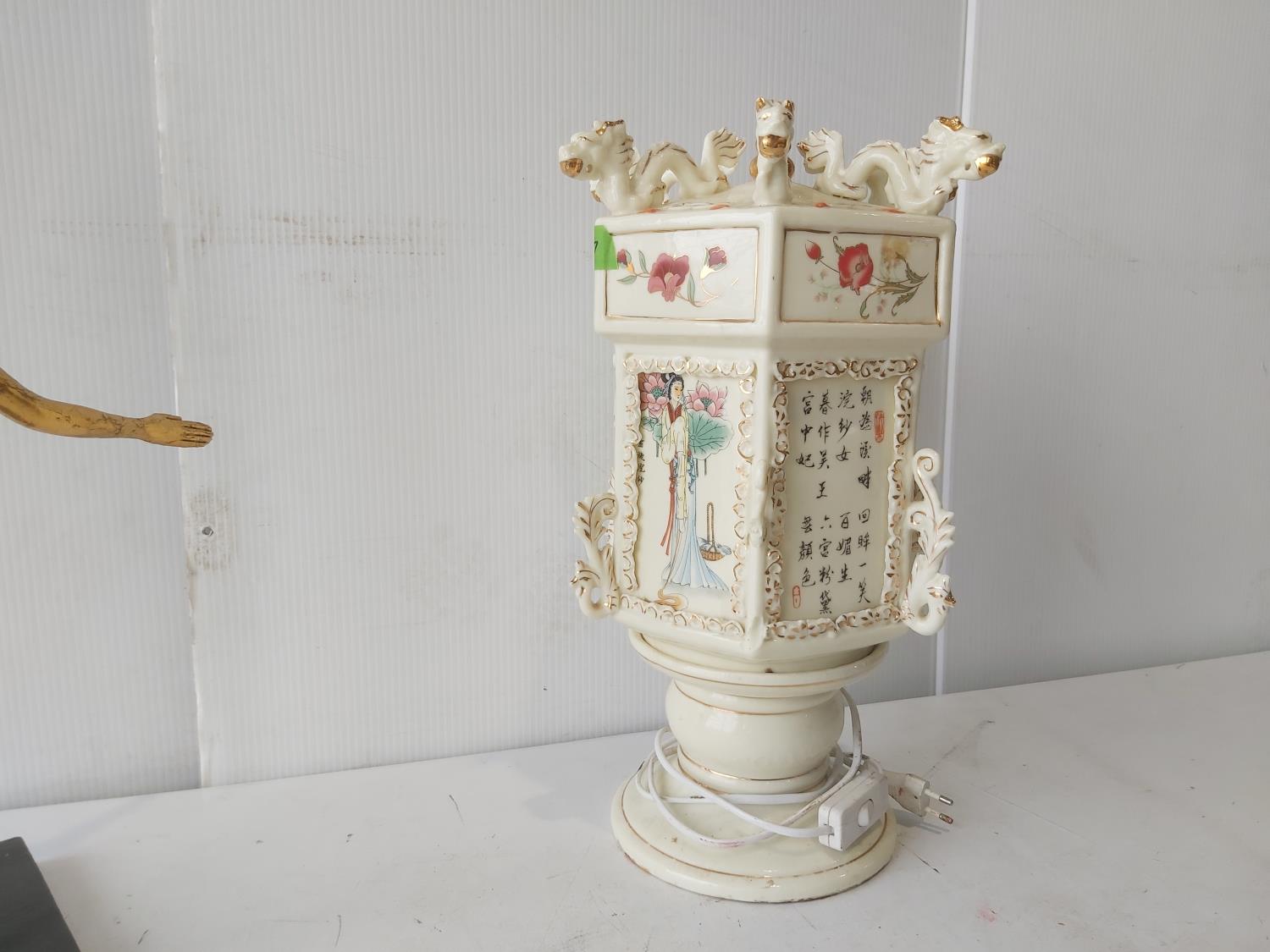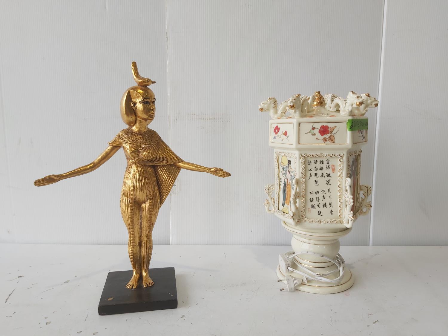 1687 20 Inch Statue of an Egyptian Goddess and Asian Porcelain Electric Lamp