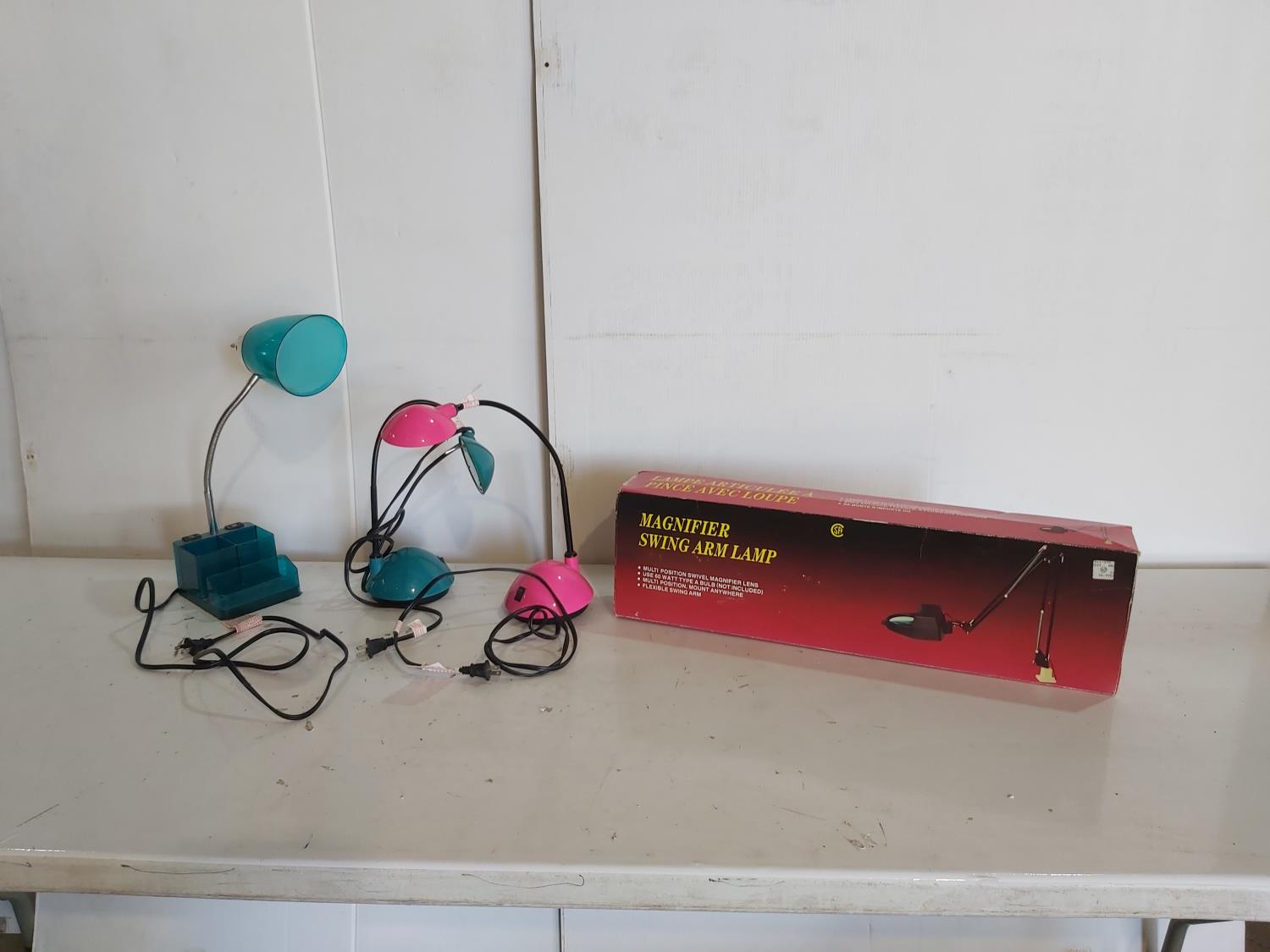1202 (3) Swing Arm Table Lamps and (1) Magnifier Swing Arm Lamp