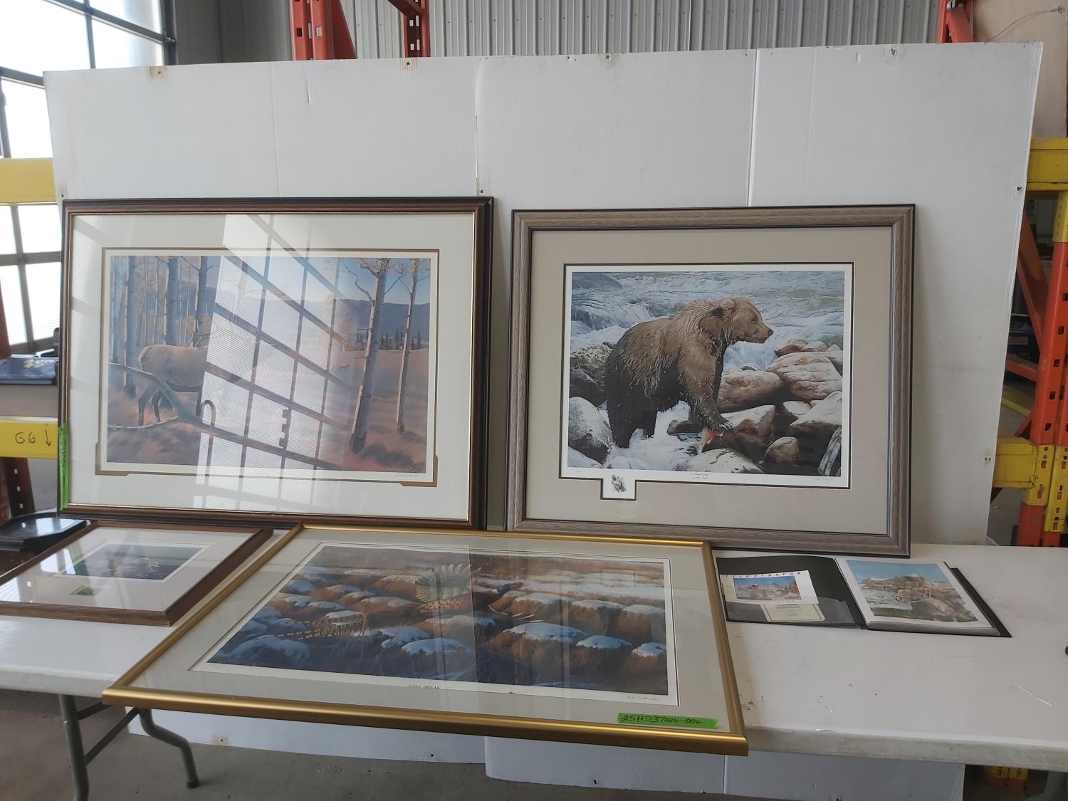 Shae Inglis 35 inch x 30 inch, Rod Sebousek 38 inch x 29 inch, C. D. Hiebert 43 inch x 32 inch, Laura Levitsky Ducks Unlimited 18 inch x 18 inch