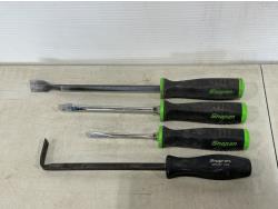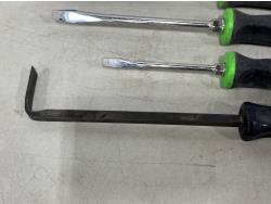 3/4 inch wide pry bar, angle pry par (2) flathead screwdrivers
