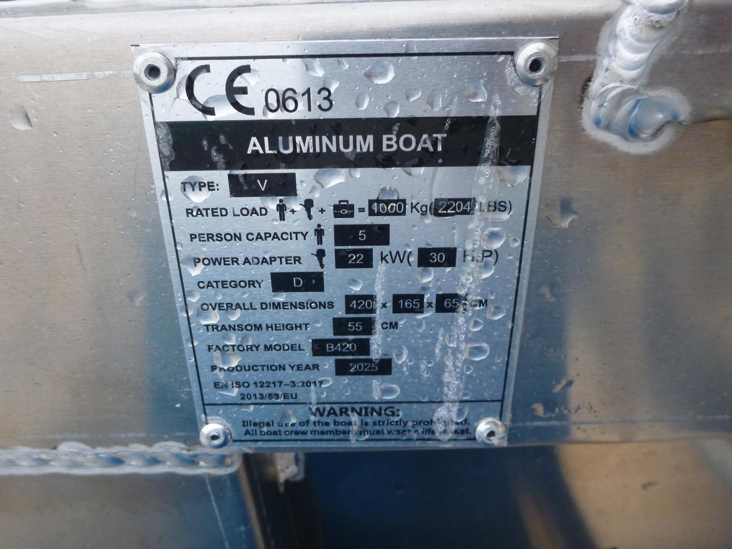 2500 4.2 M Aluminum Boat (Unused)